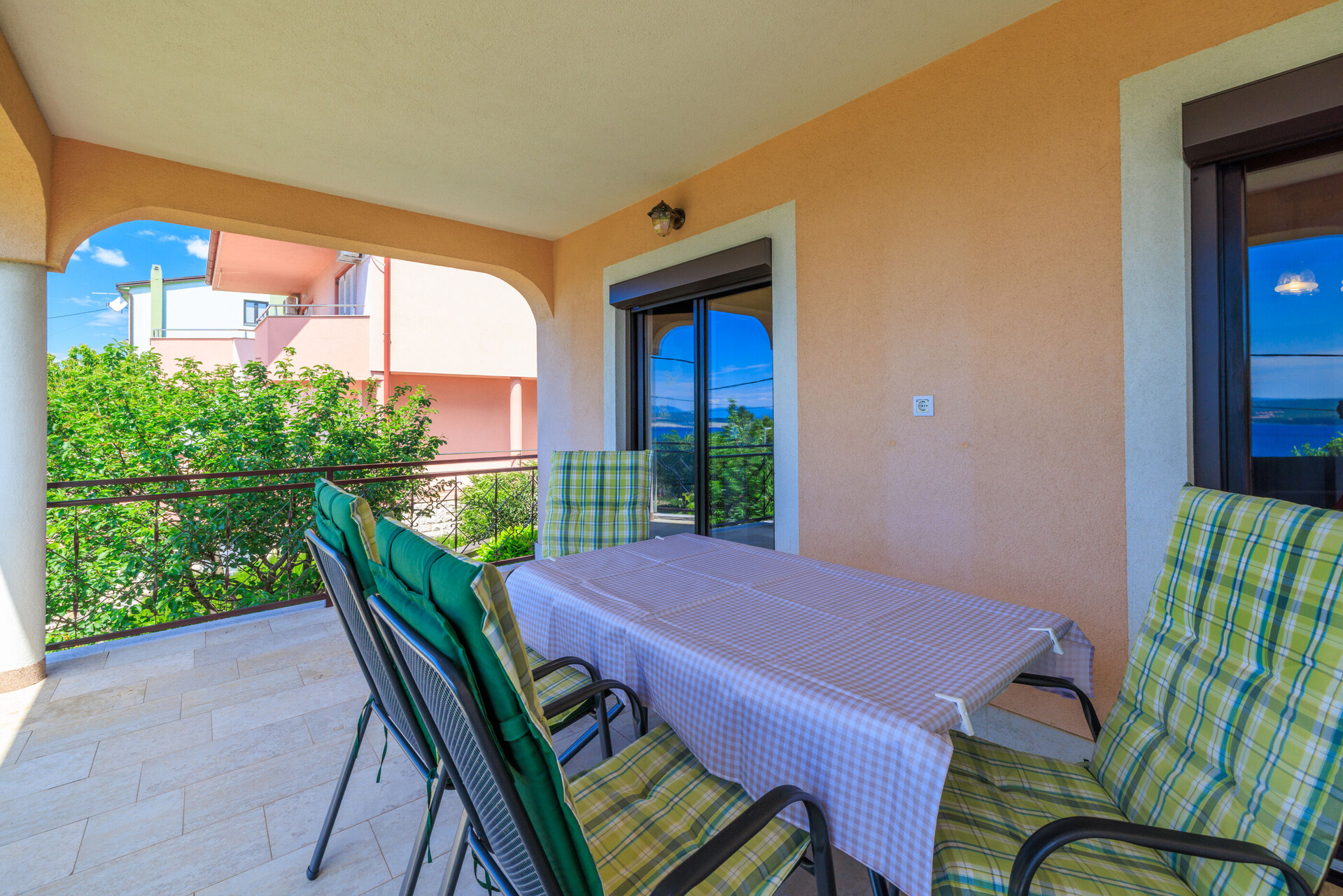 • wi-fi zdarma, částečný pohled na moře, Rozloha vnitřního prostoru je 55 m2, Jednotka je na: v prvním patře, Ložnice: 1, Koupelny: 1, Balkony: 1, klimatizace započítána v ceně, TV, satelitní programy.