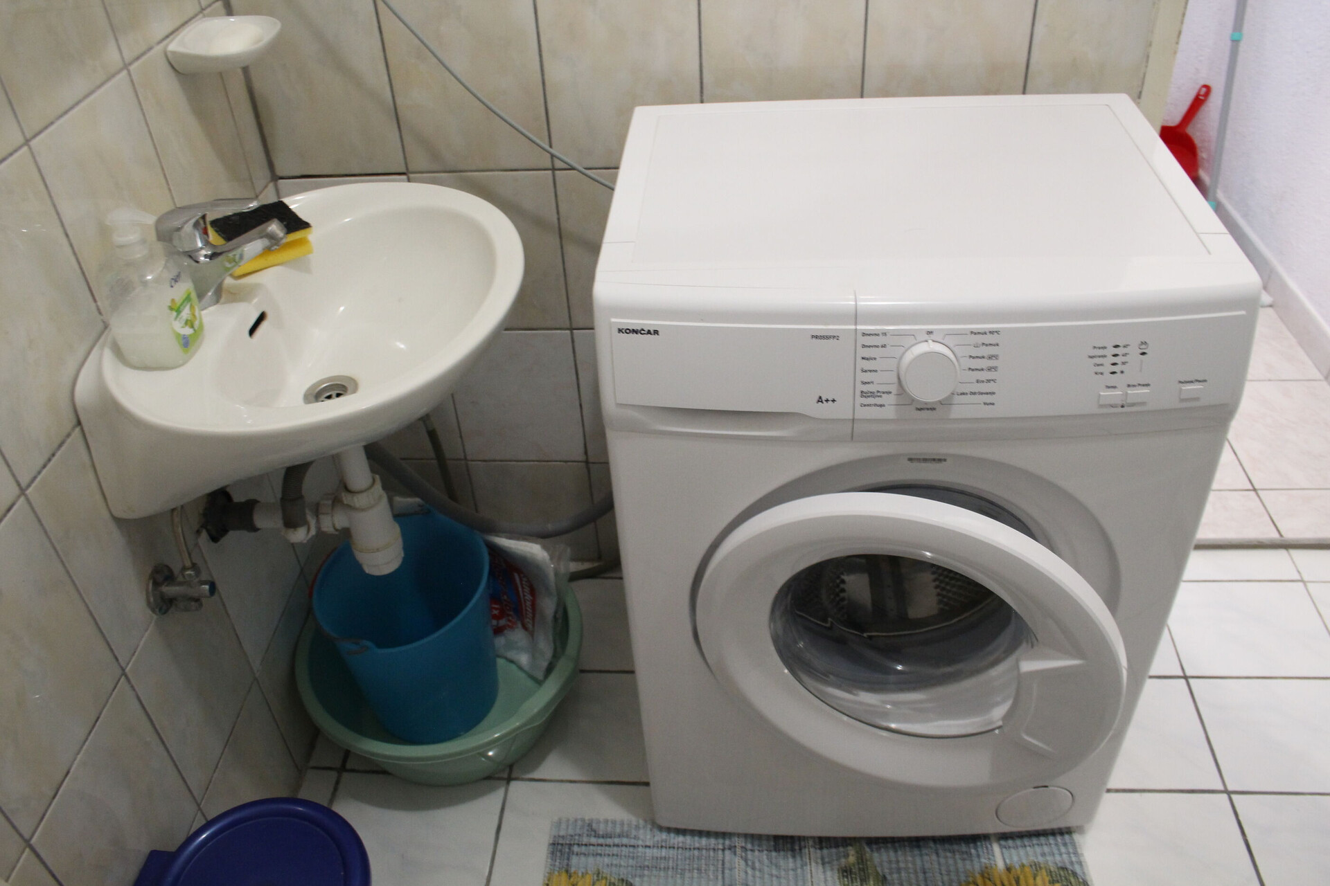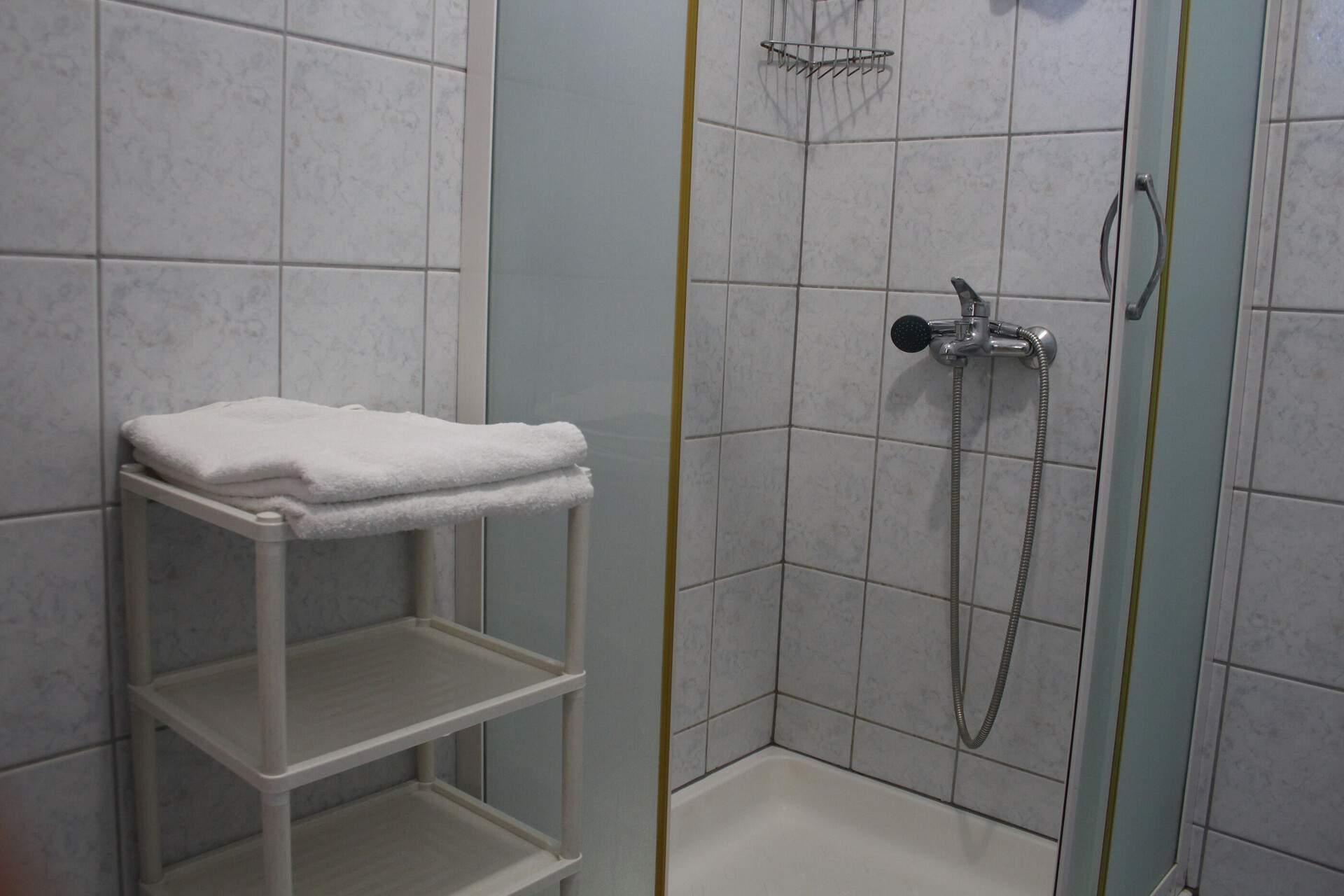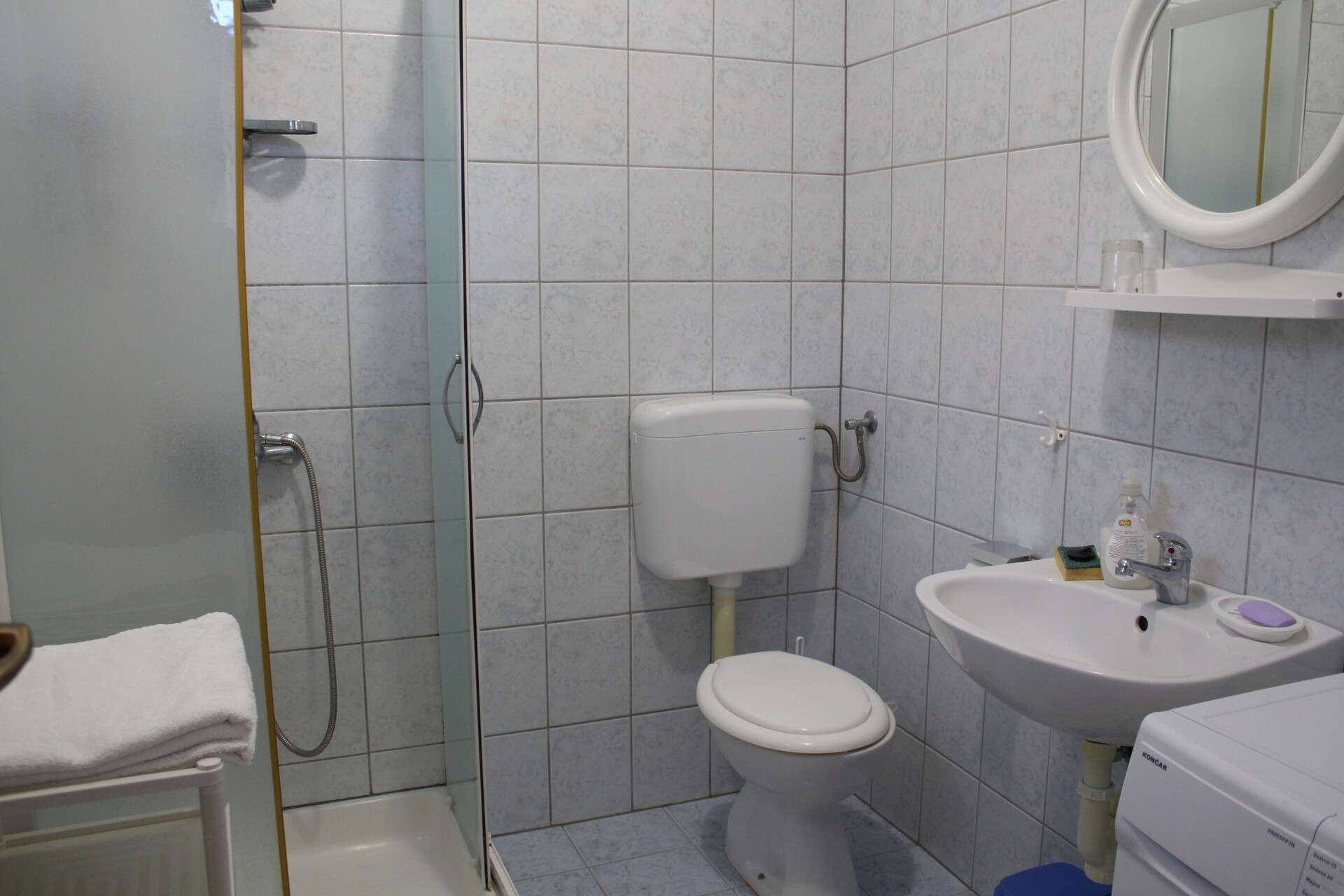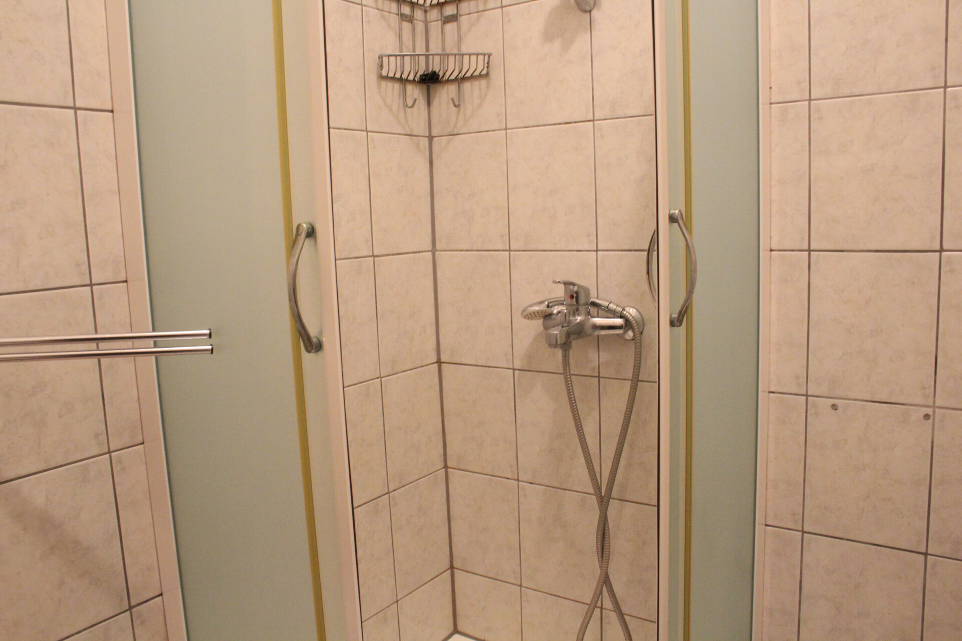 • sprcha, sprchový kout, pračka, fén, ručníky.