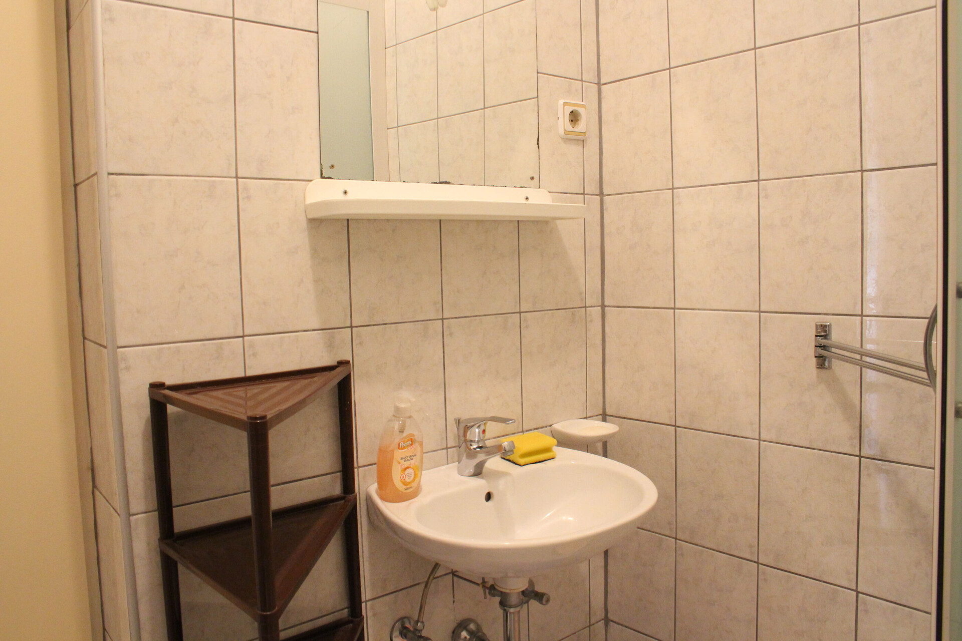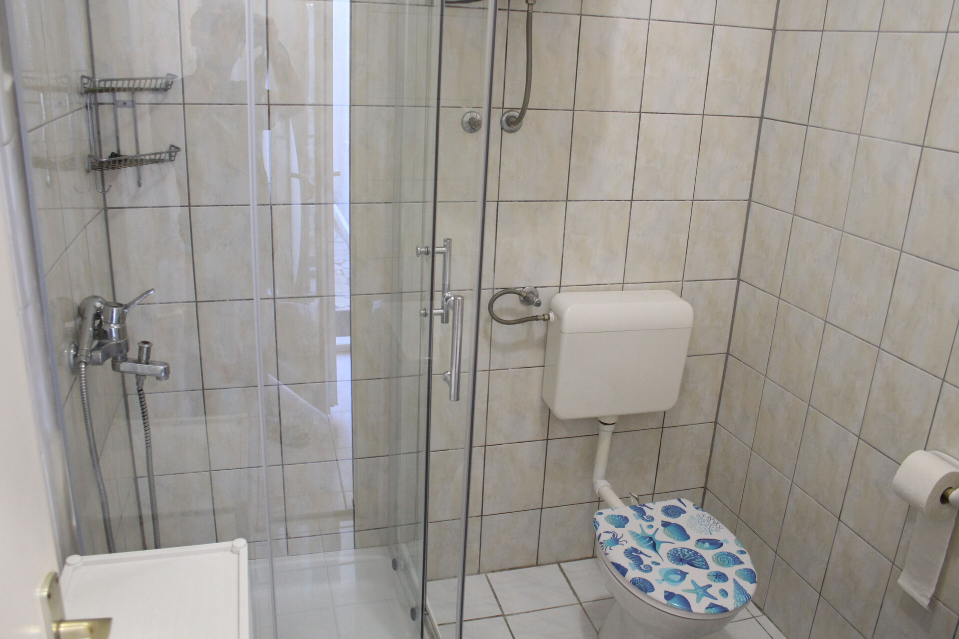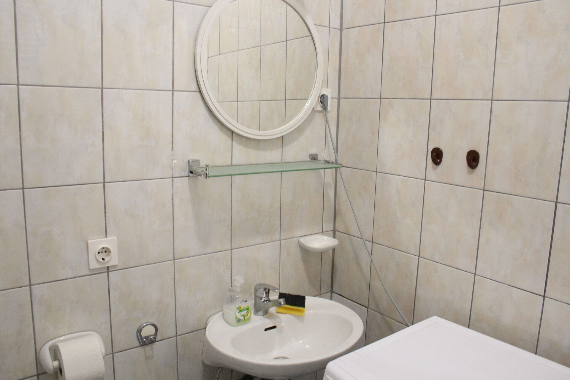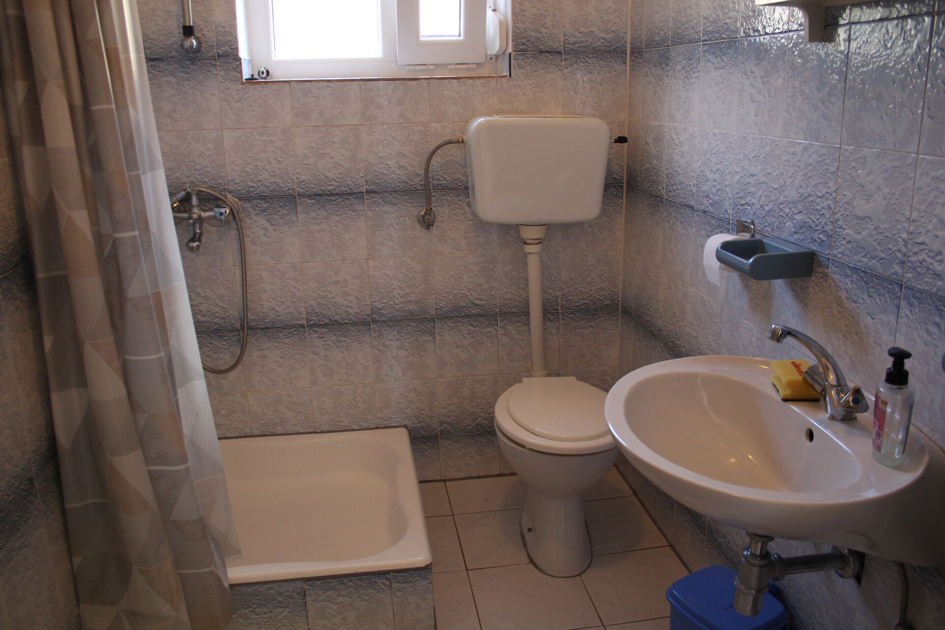 • sprcha, sprchový kout, pračka, fén, ručníky.