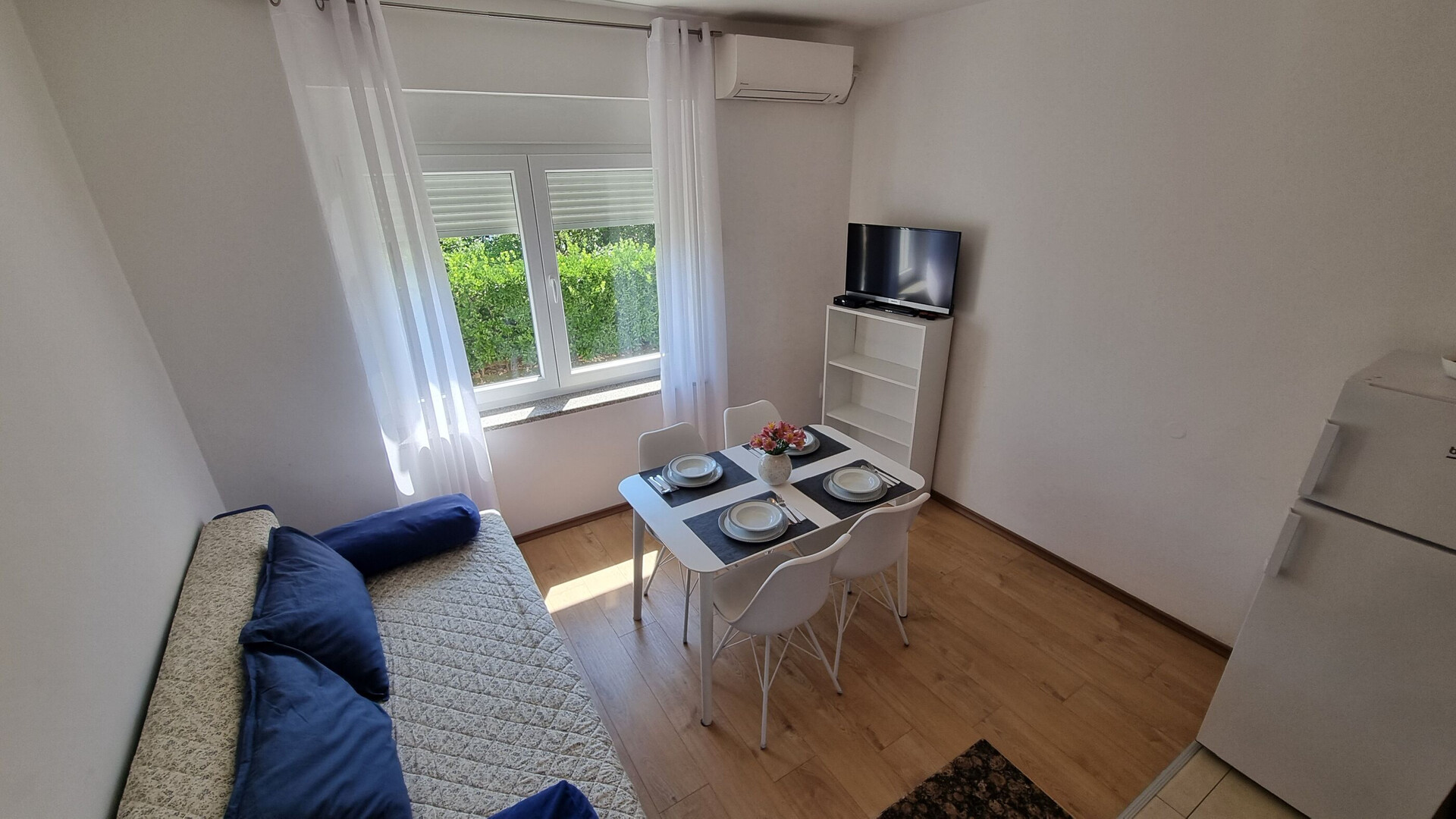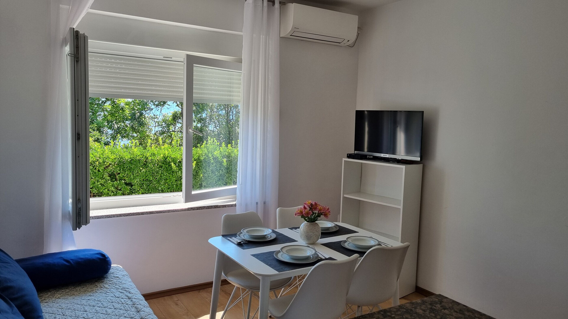 • wi-fi zdarma, pohled do zahrady, Rozloha vnitřního prostoru je 55 m2, Jednotka je na: v přízemí, Ložnice: 1, Koupelny: 1, Balkony: 1, klimatizace započítána v ceně, TV.