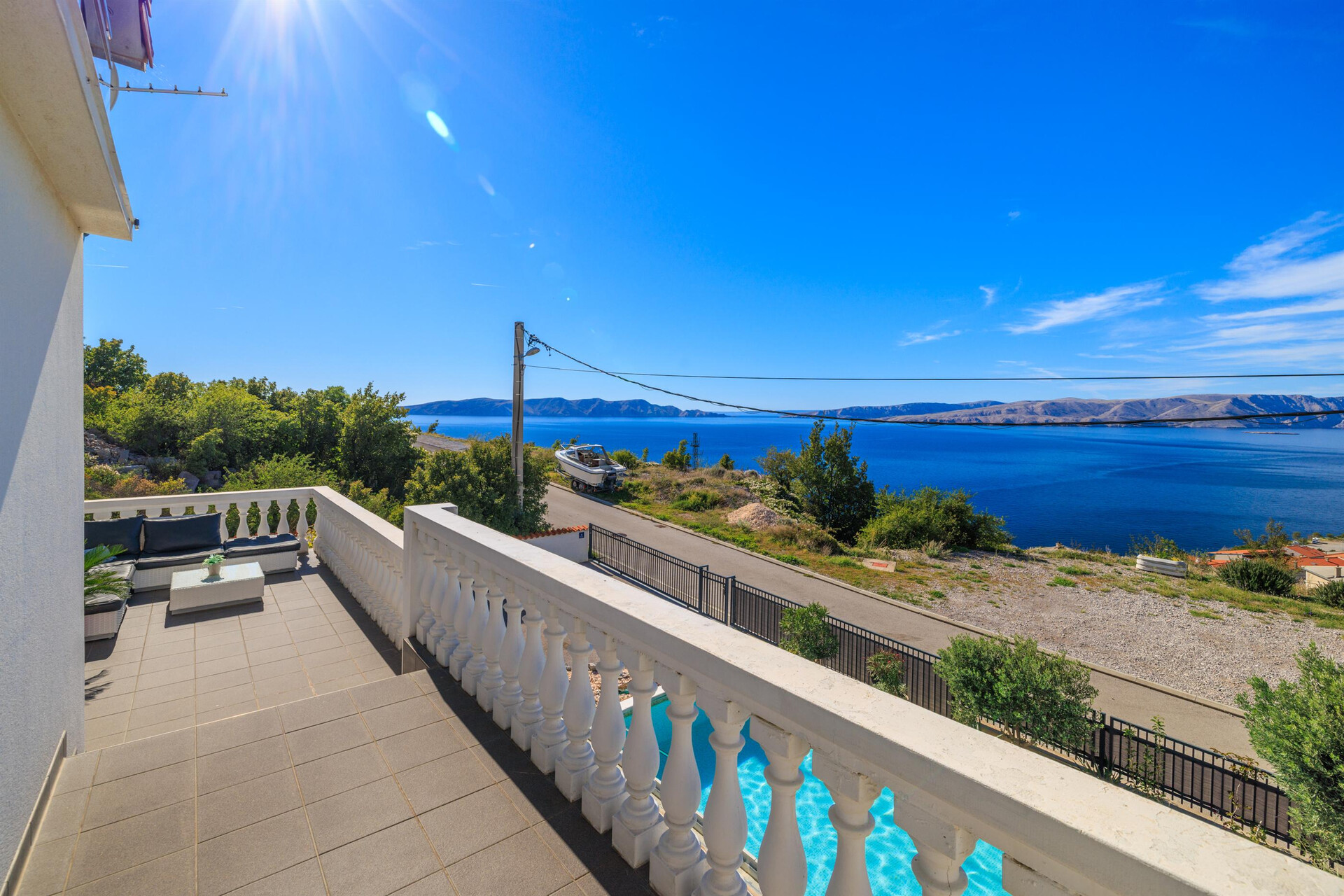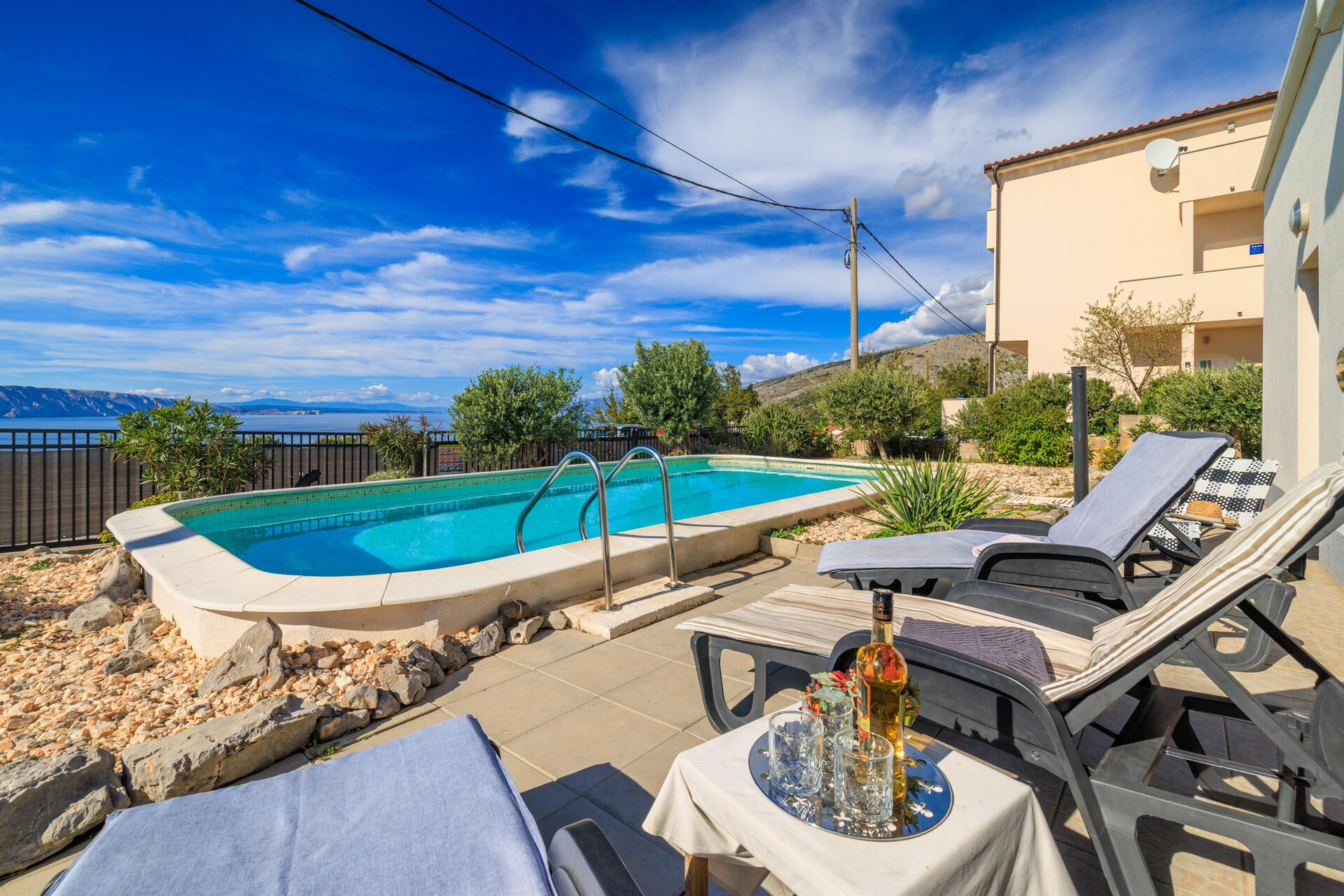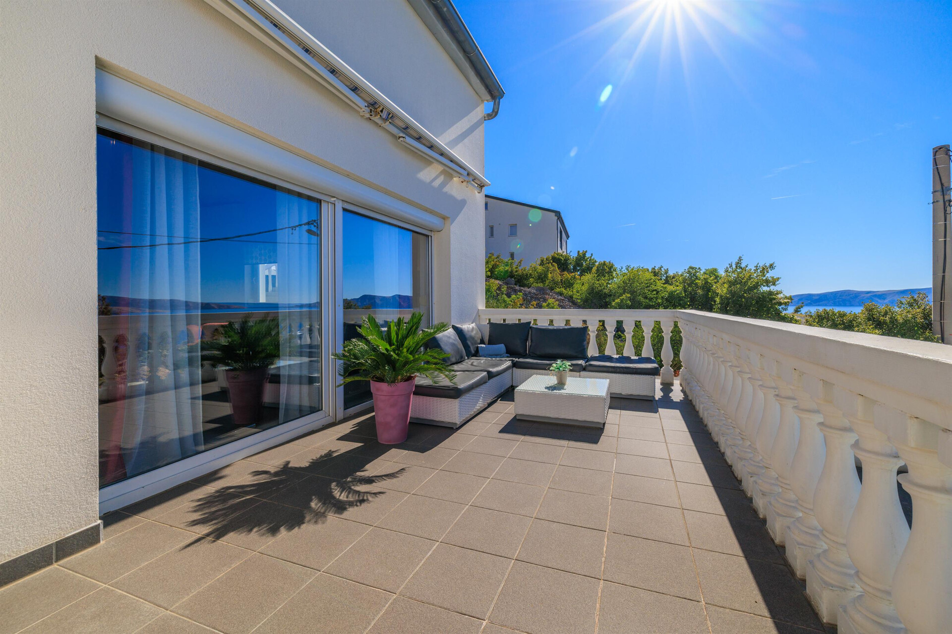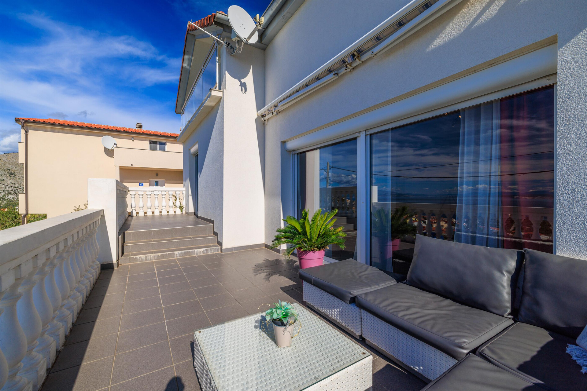wi-fi zdarma, pohled na moře, Rozloha vnitřního prostoru je 80 m2, Jednotka je na: v prvním patře, Ložnice: 2, Koupelny: 1, Balkony: 1, klimatizace započítána v ceně, TV, satelitní programy.