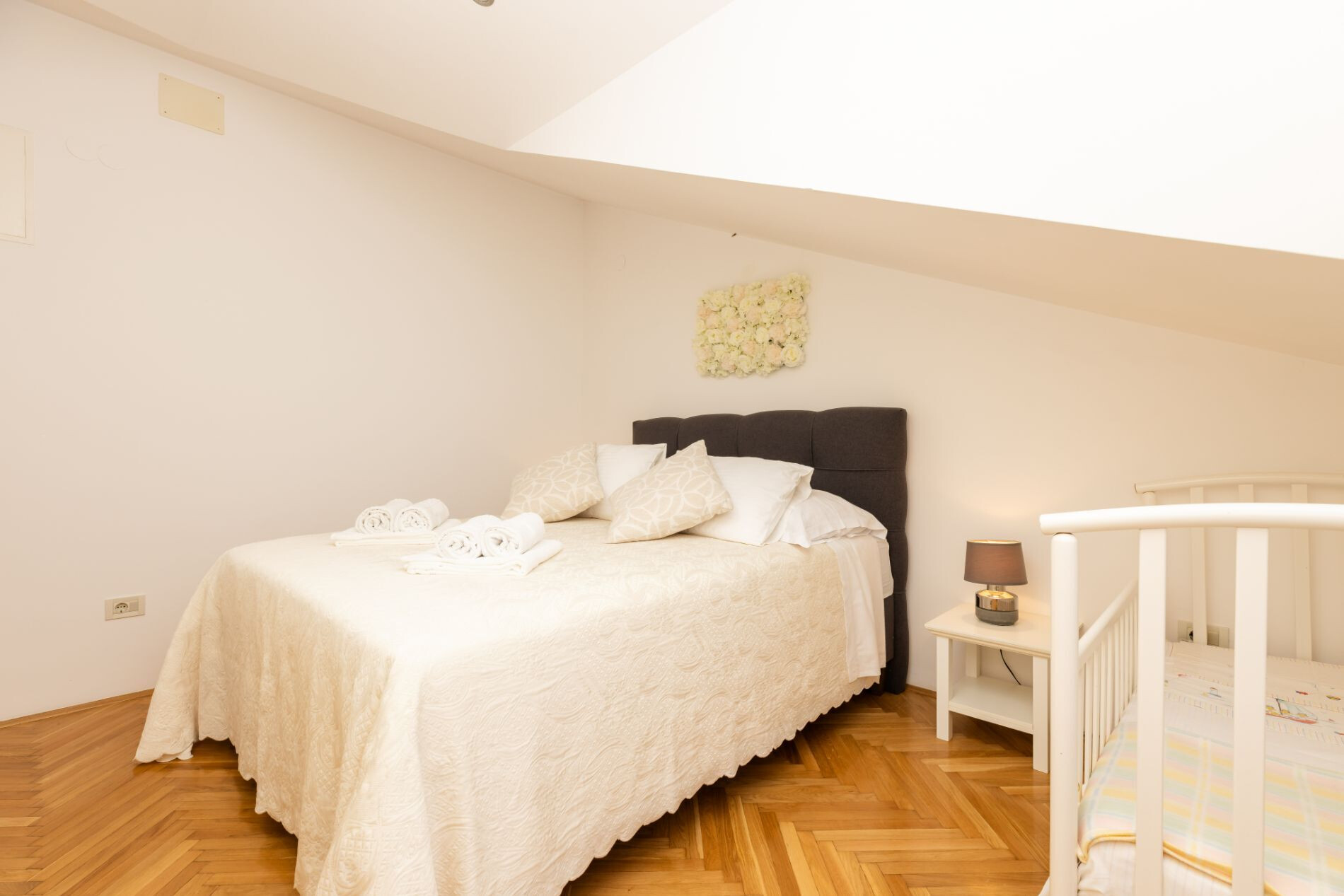 • Postele: manželská postel. Ložní prádlo je k dispozici.