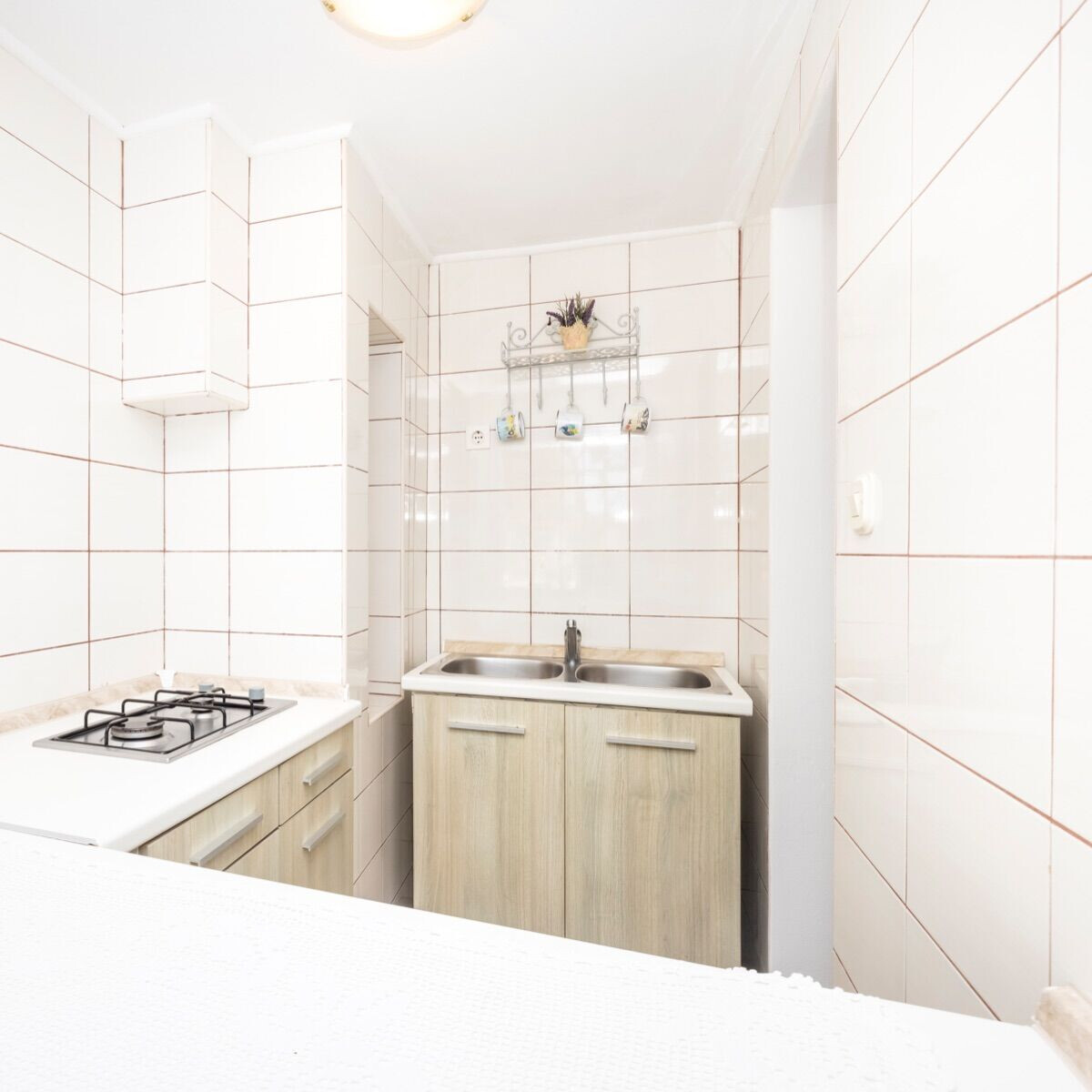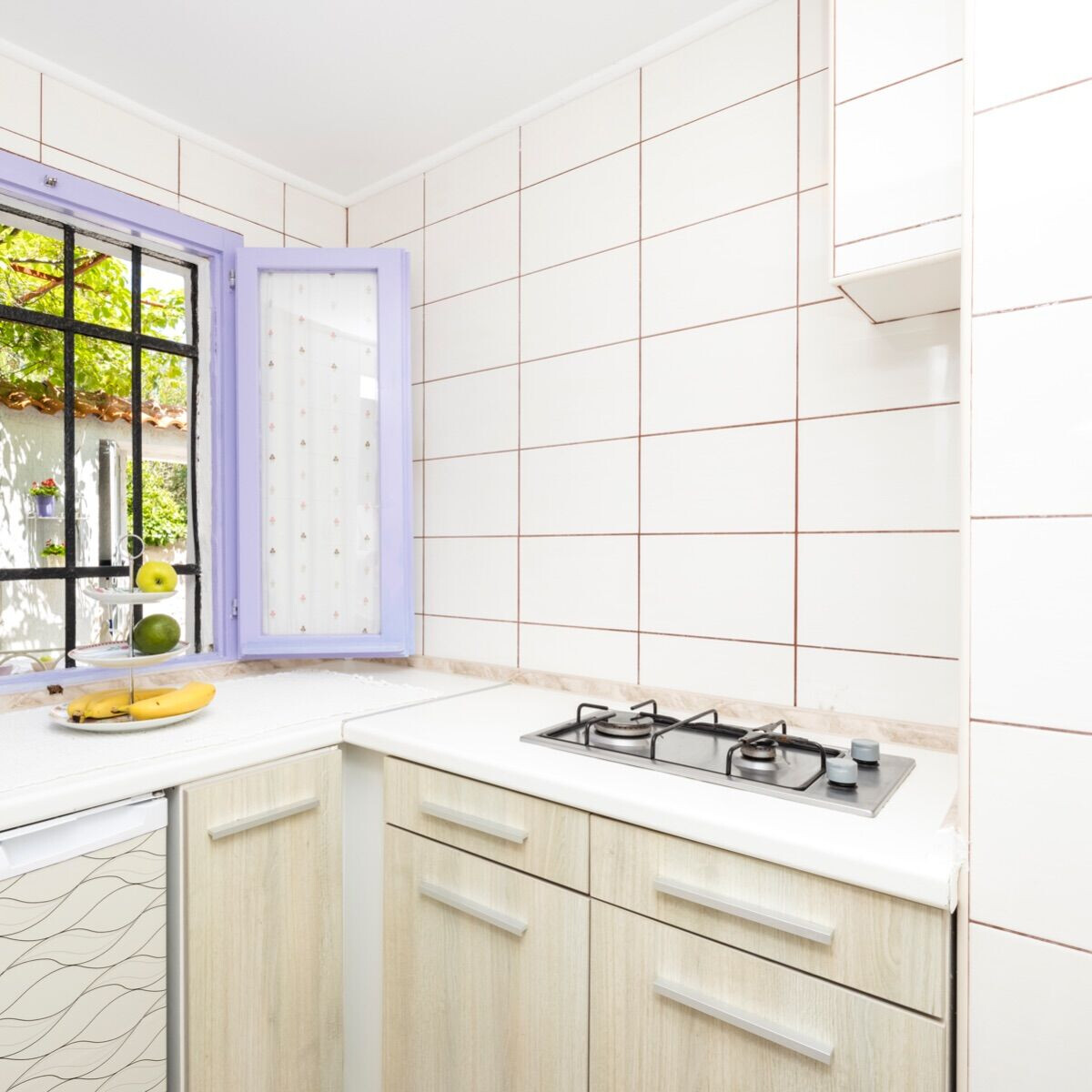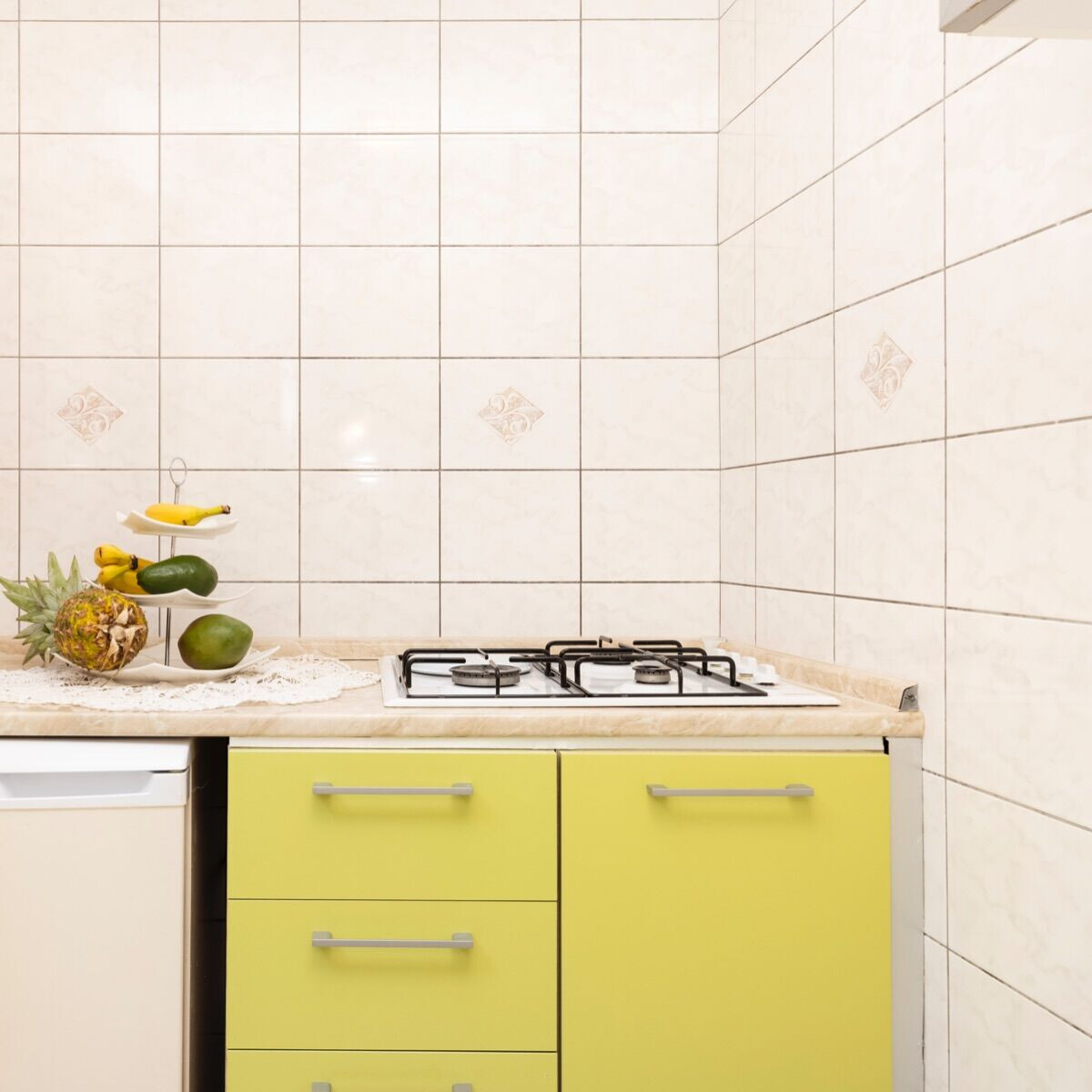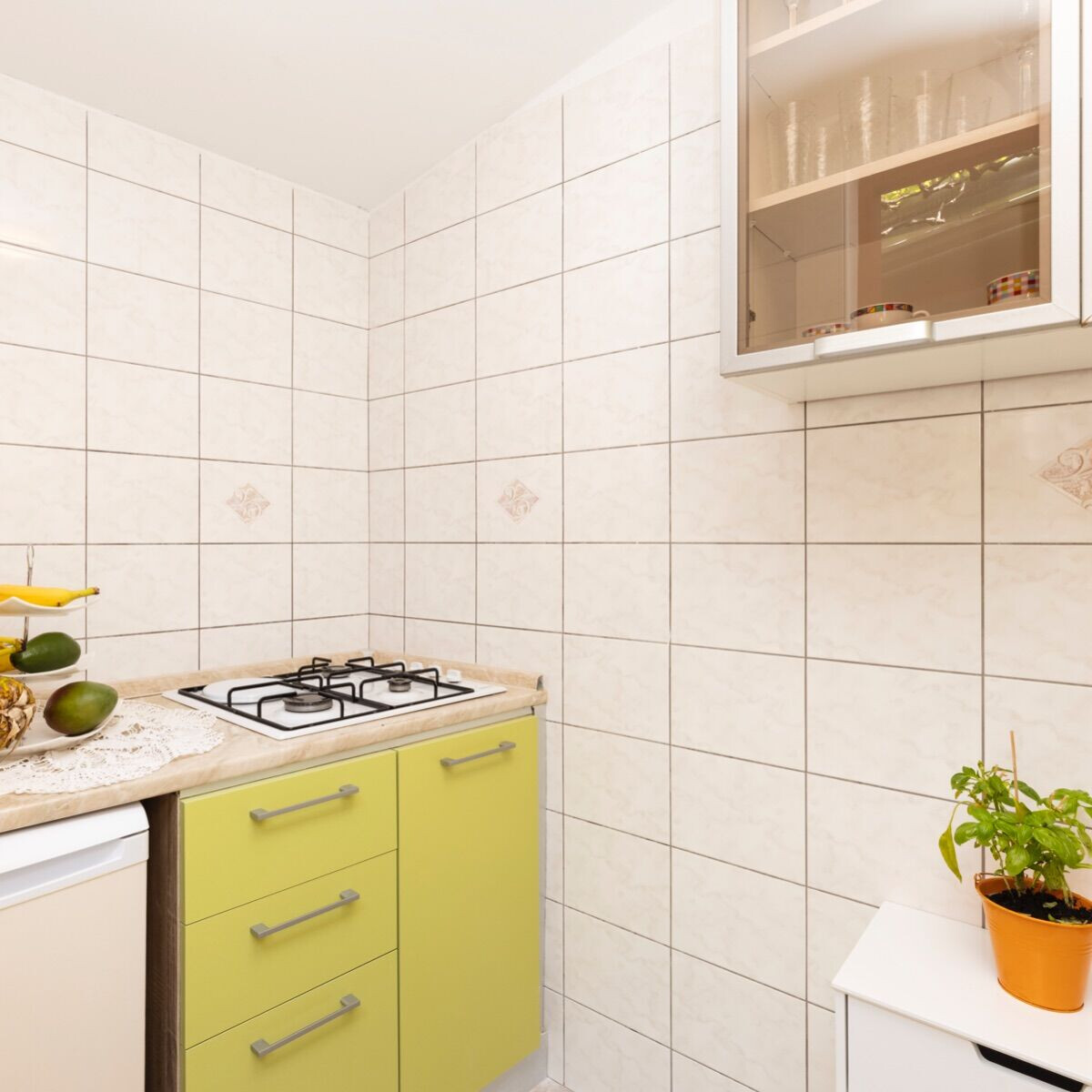 • stůl a židle, dřez, lednička, sporák varná deska.