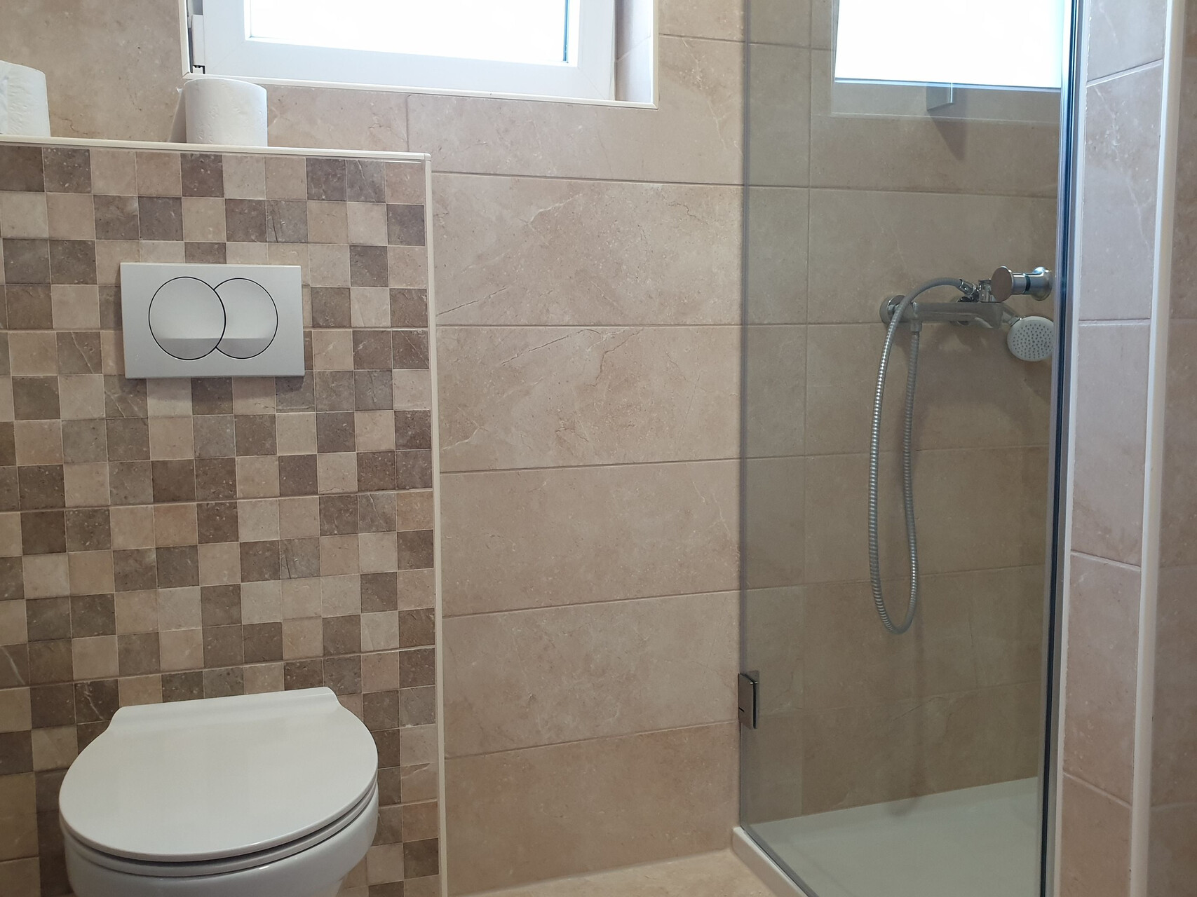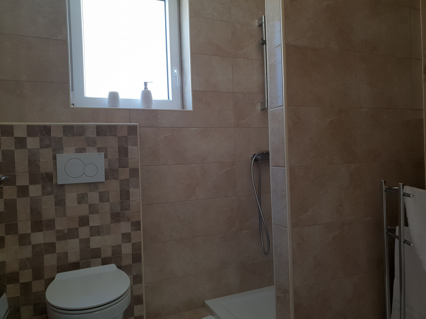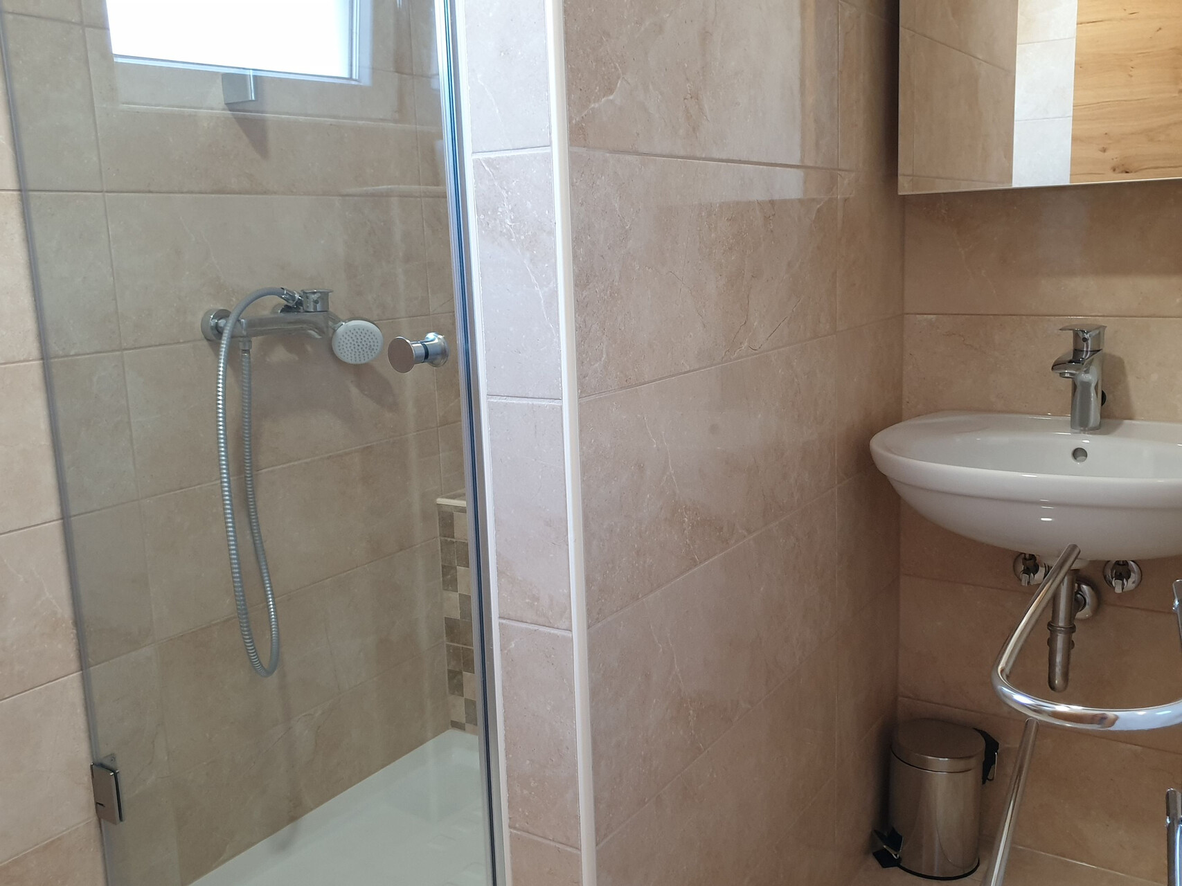 • sprcha, sprchový kout, fén, ručníky.