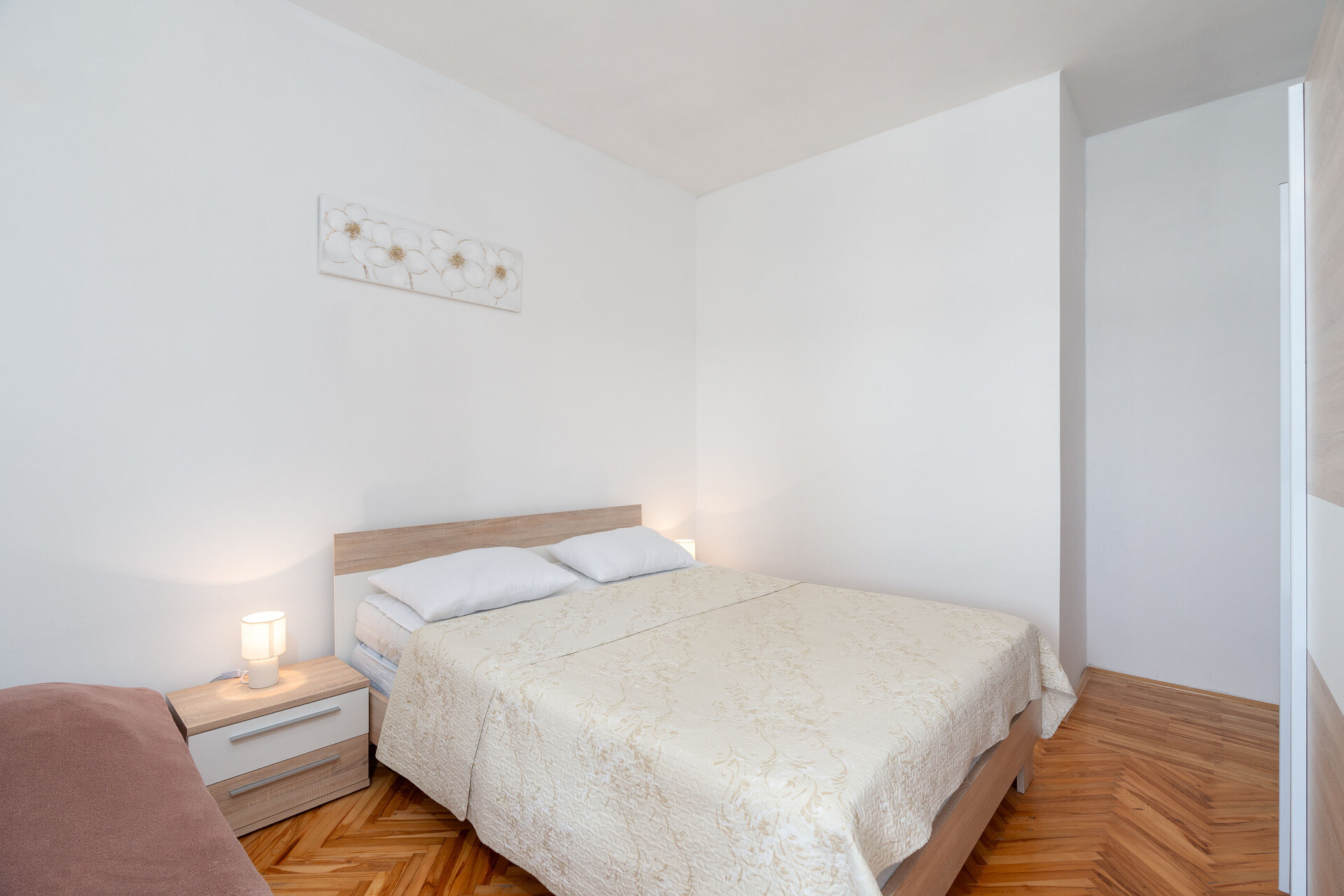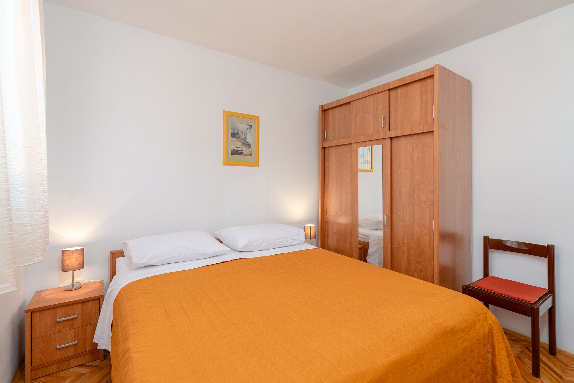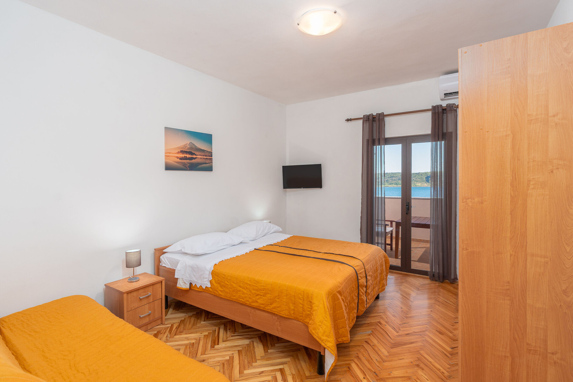 • Postele: manželská postel. Pokoj má přistýlku: jedna přistýlka. Ložní prádlo je k dispozici. Z pokoje se vychází na balkon.