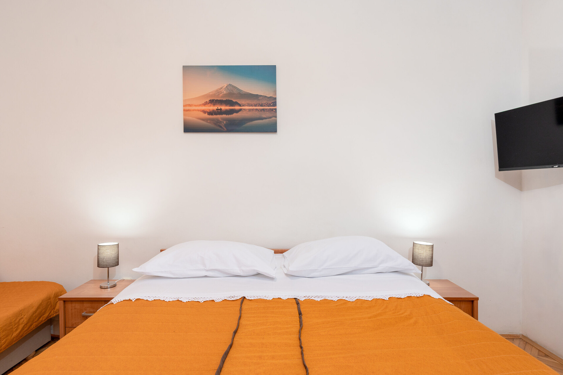 • Postele: manželská postel. Pokoj má přistýlku: jedna přistýlka. Ložní prádlo je k dispozici.
