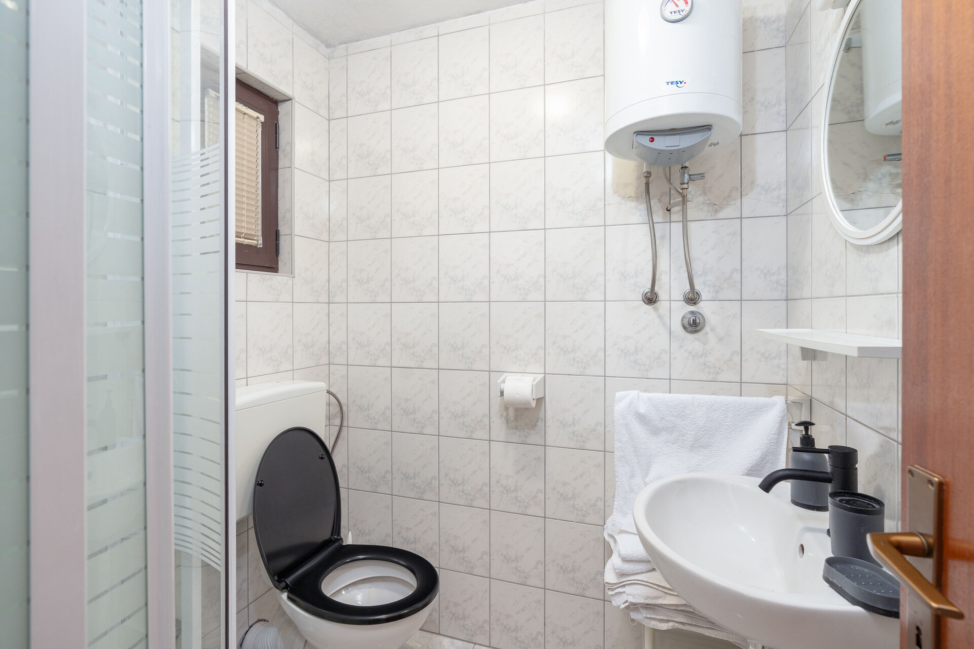 • sprcha, sprchový kout, ručníky.