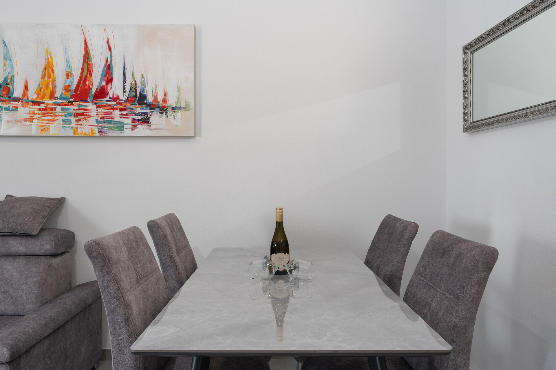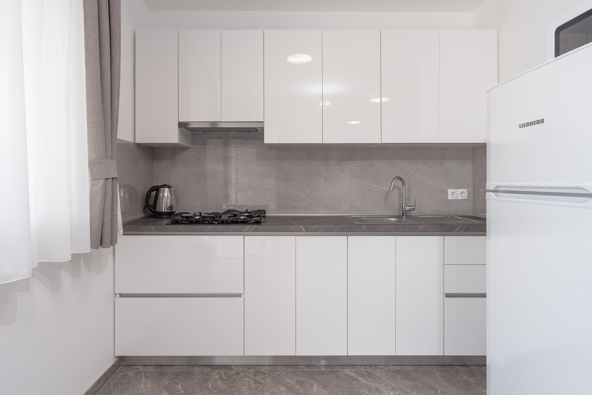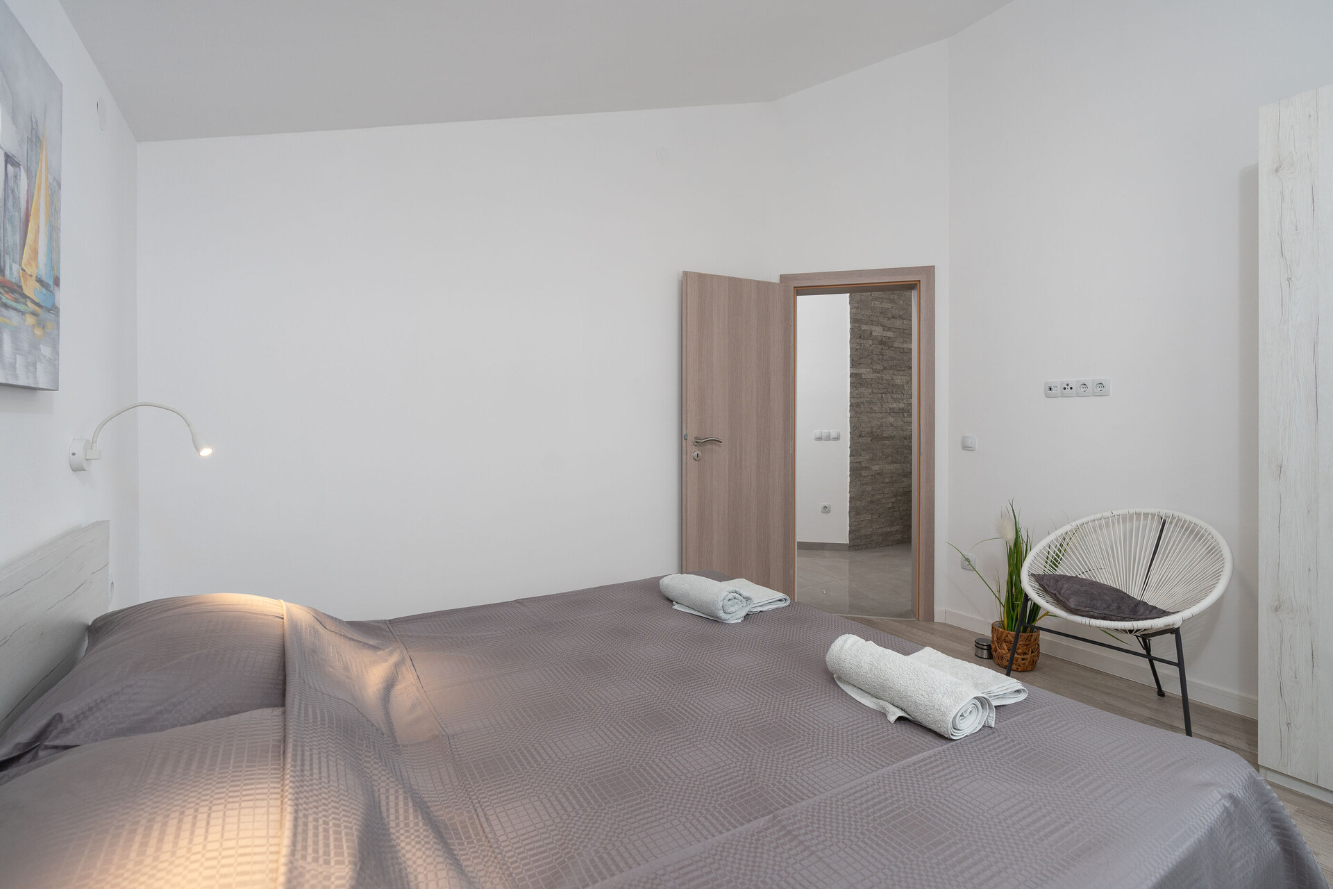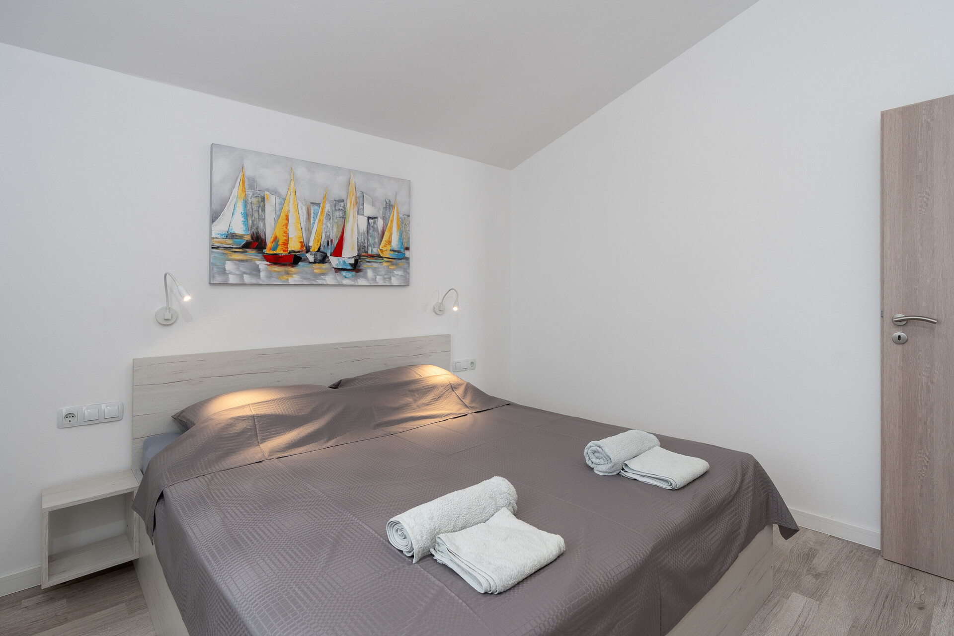 • wi-fi zdarma, pohled na moře, Rozloha vnitřního prostoru je 45 m2, Jednotka je na: v prvním patře, Ložnice: 1, Koupelny: 1, Balkony: 1, klimatizace započítána v ceně, TV.