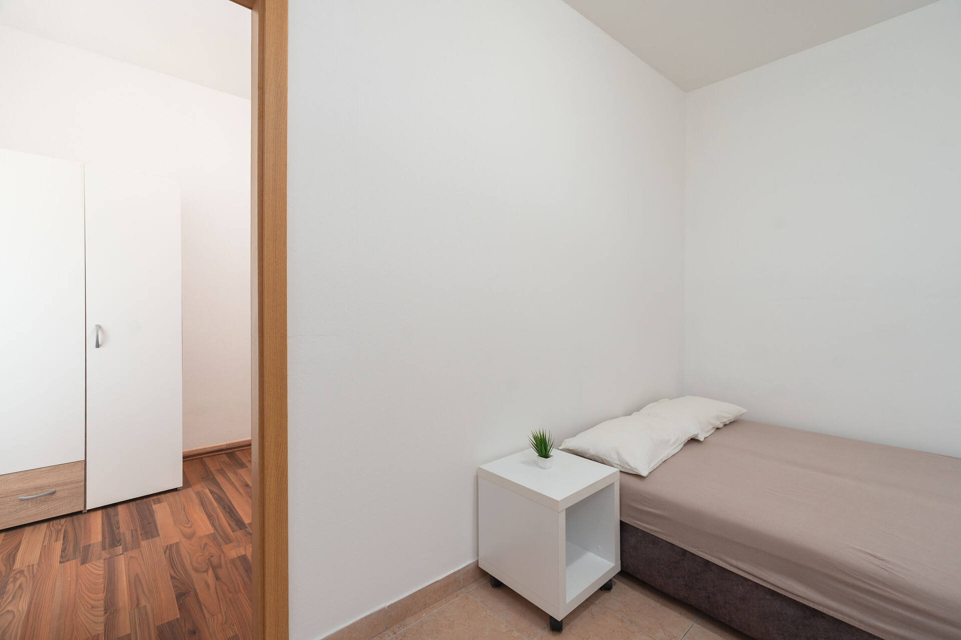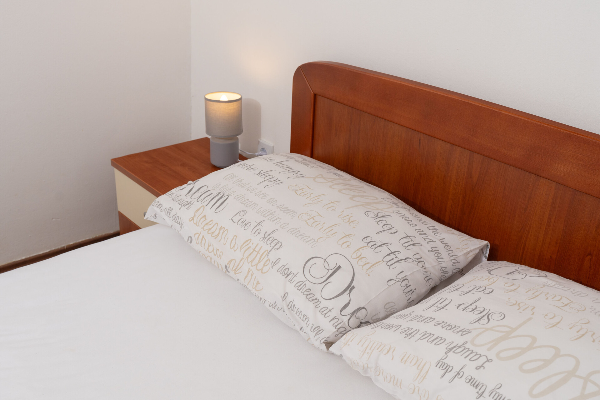 • Postele: manželská postel. Ložní prádlo je k dispozici. Z pokoje se vychází na balkon.