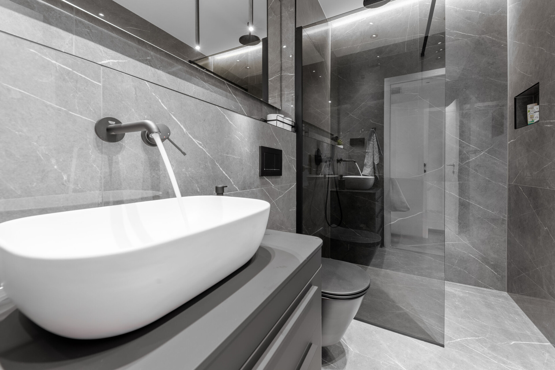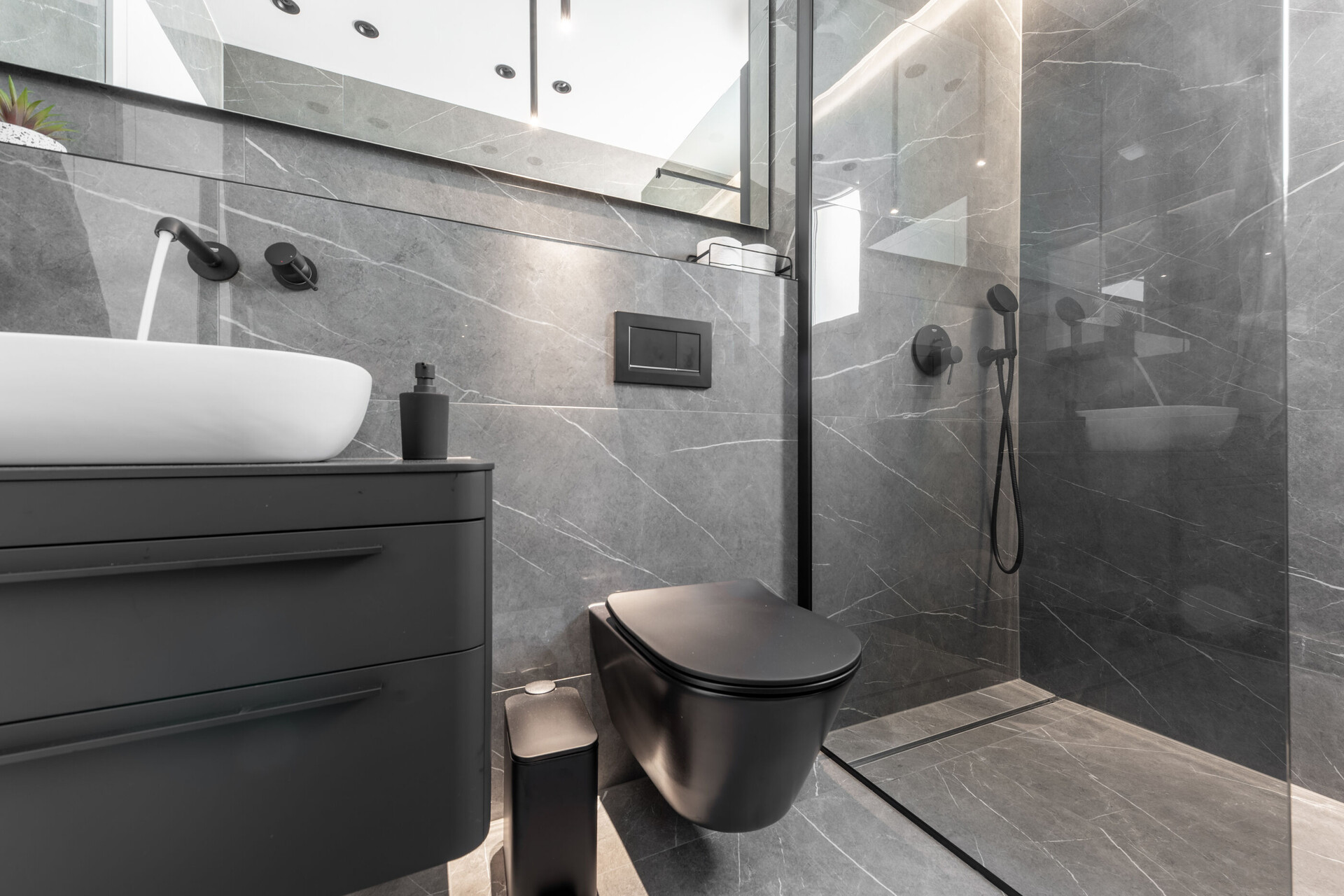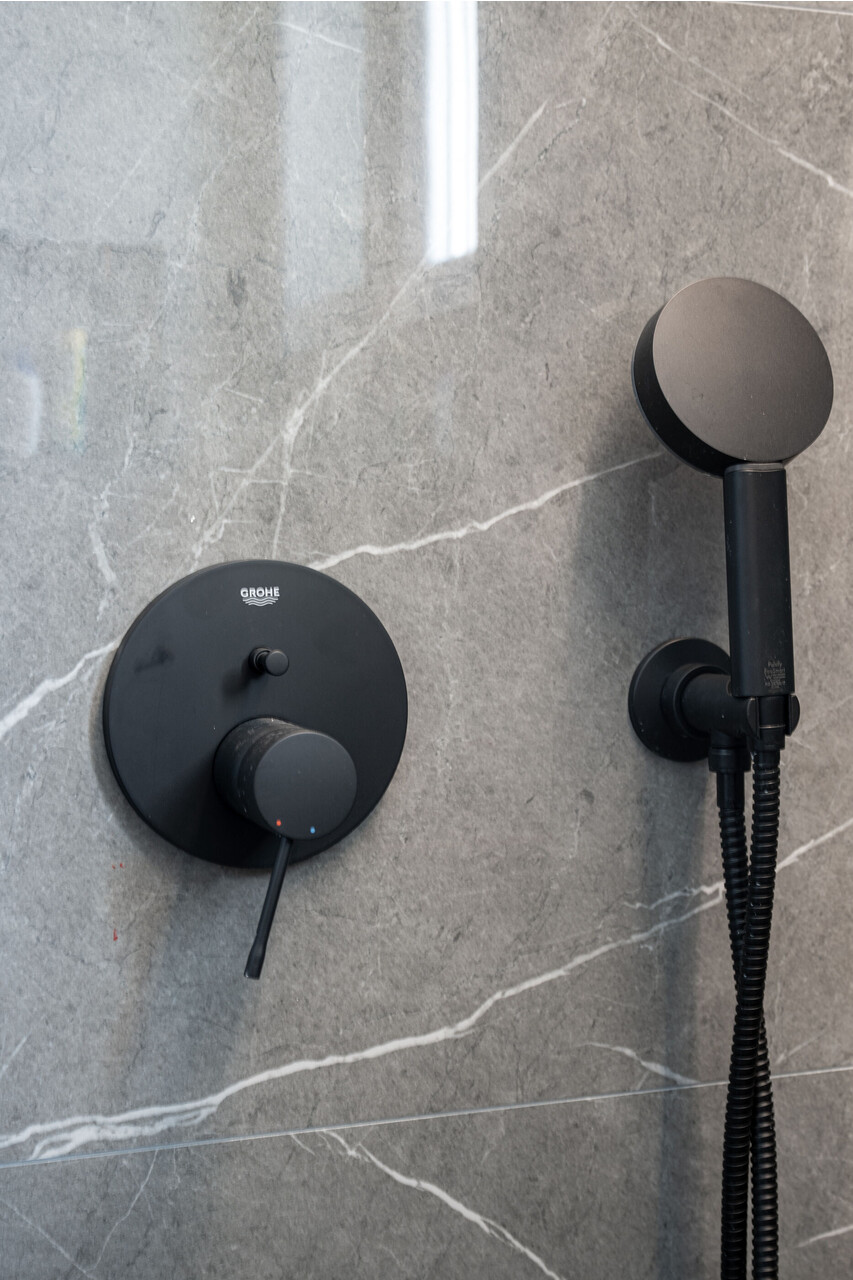 • sprcha, sprchový kout, pračka, fén, ručníky.