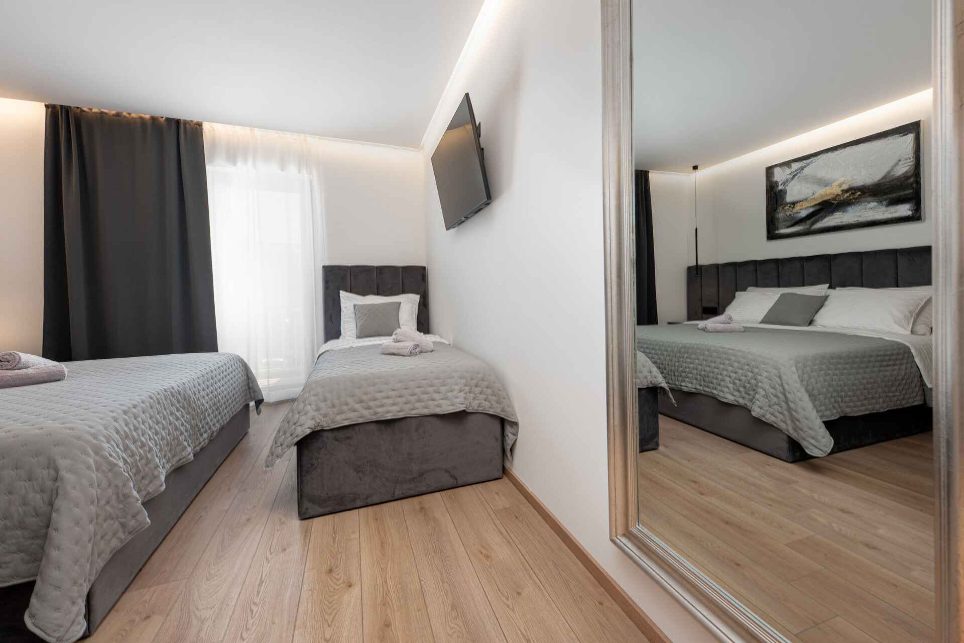 • Počet hvězdiček:4. Rozloha vnitřního prostoru je 90 m2. Ložnice: 2. Obývací pokoj: 1. Kuchyně: 1. Koupelny: 3. Balkony: 1. Jednotka je na: v druhém patře.