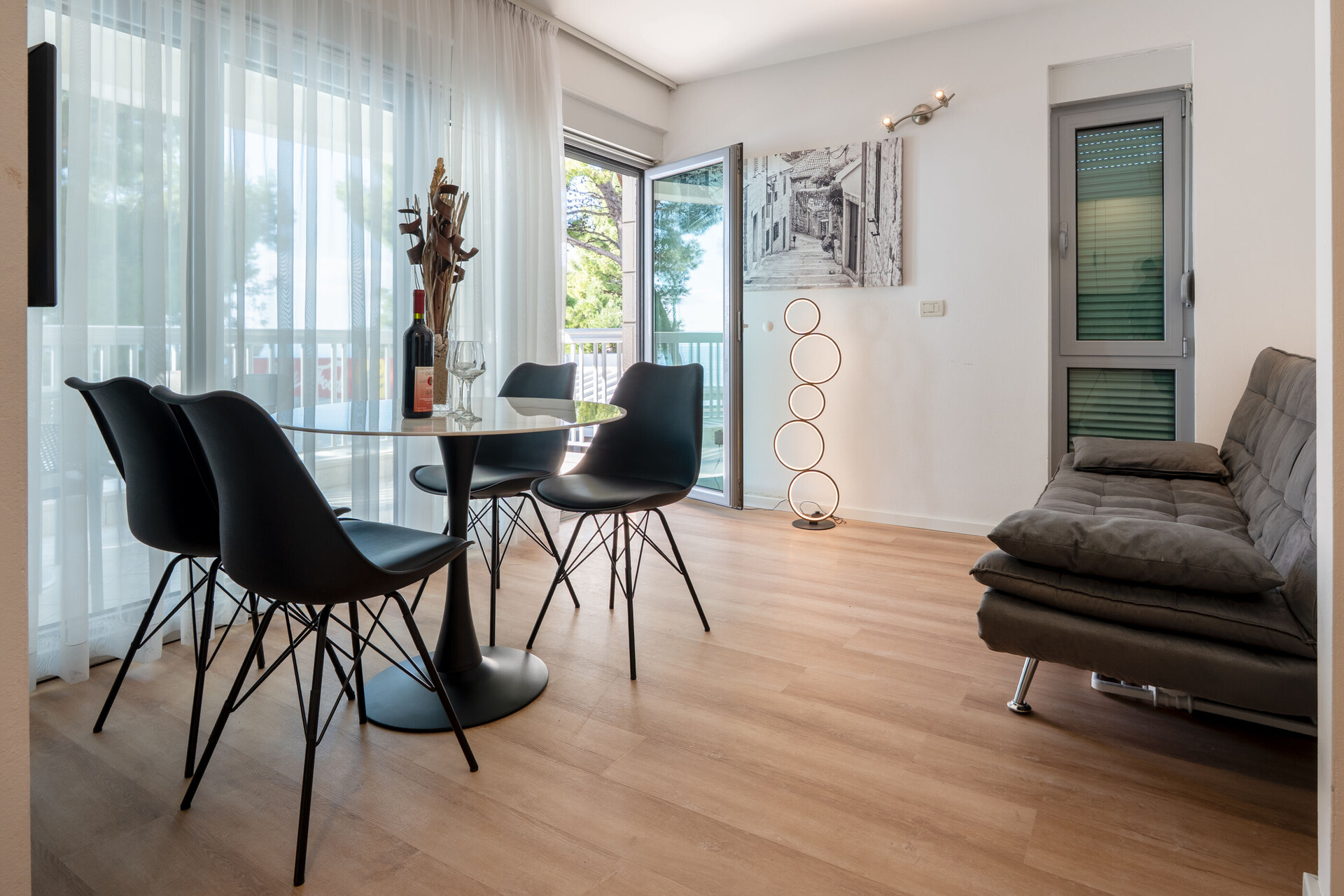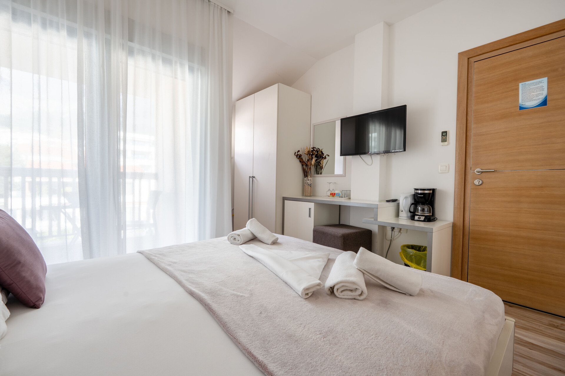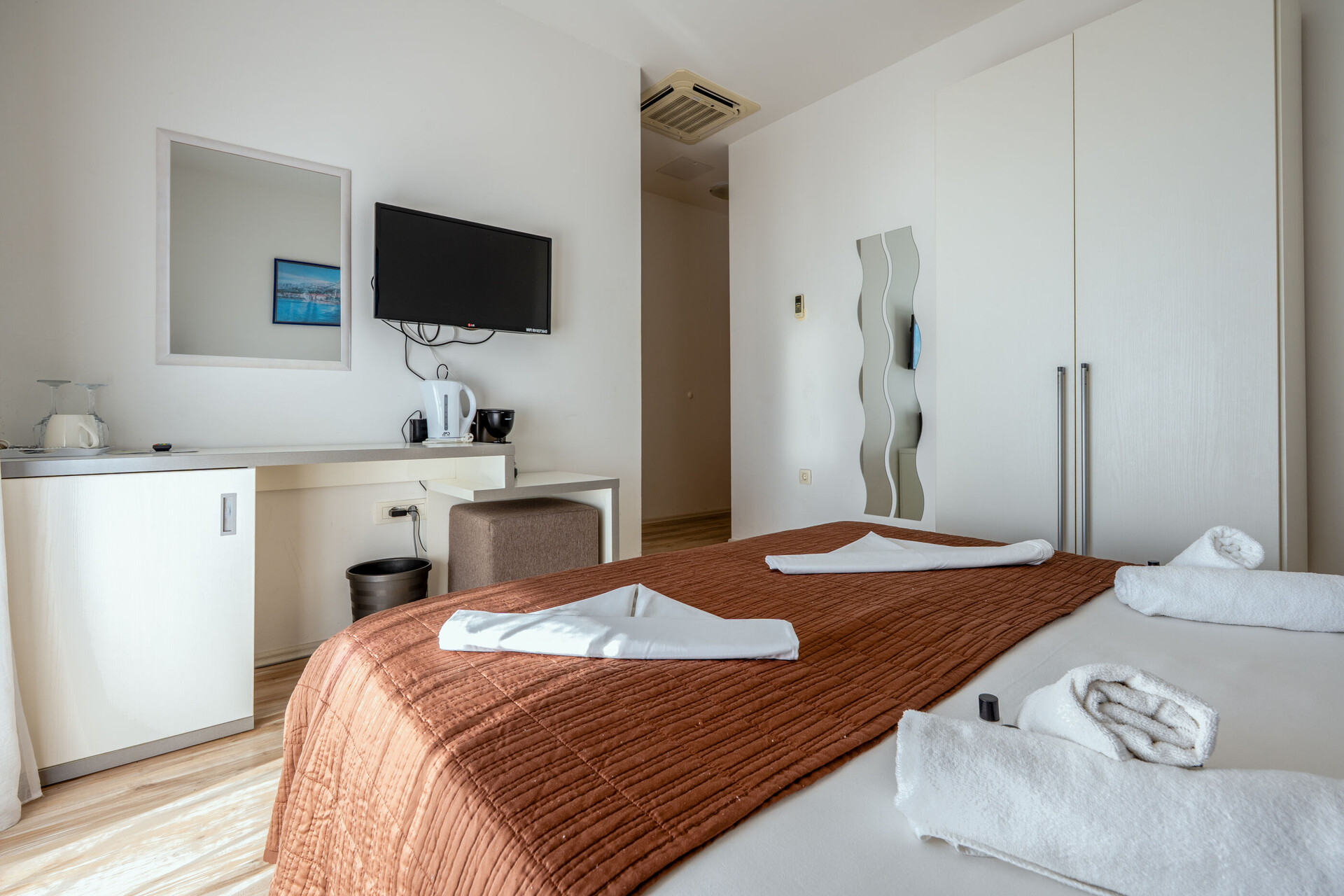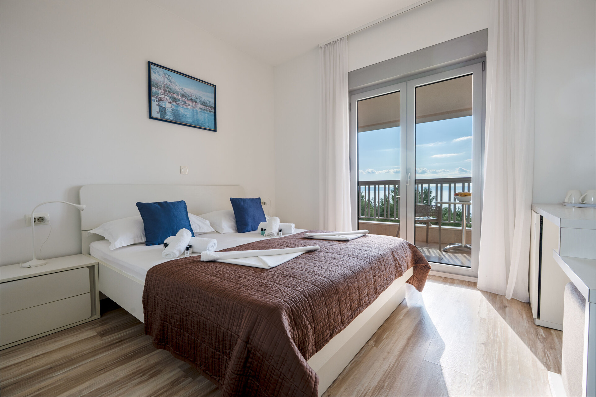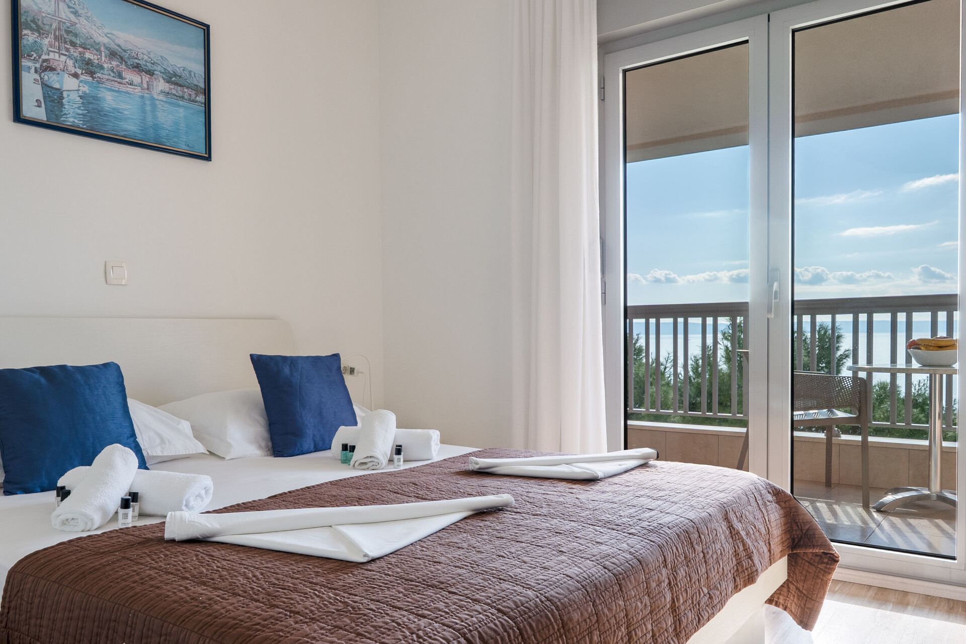 • wi-fi zdarma, pohled na moře, klimatizace započítána v ceně, TV, Rozloha vnitřního prostoru je 25 m2, Jednotka je na: ve čtvrtém patře.