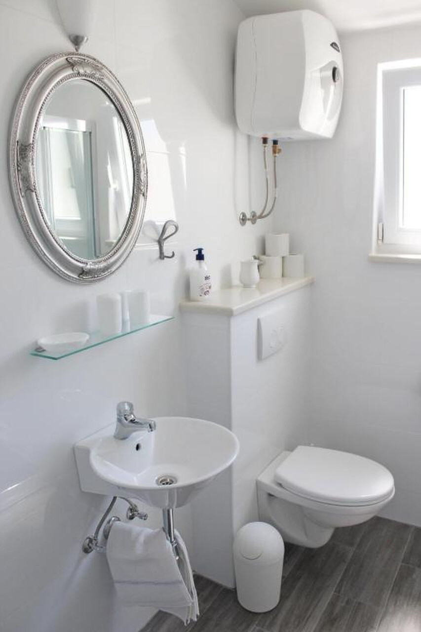 • sprcha, sprchový kout, pračka, fén, ručníky.