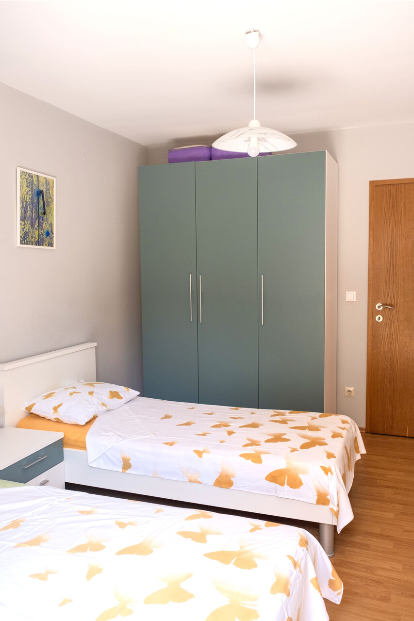• Postele: dvě oddvojené postele. Ložní prádlo je k dispozici. Z pokoje se vychází na balkon.