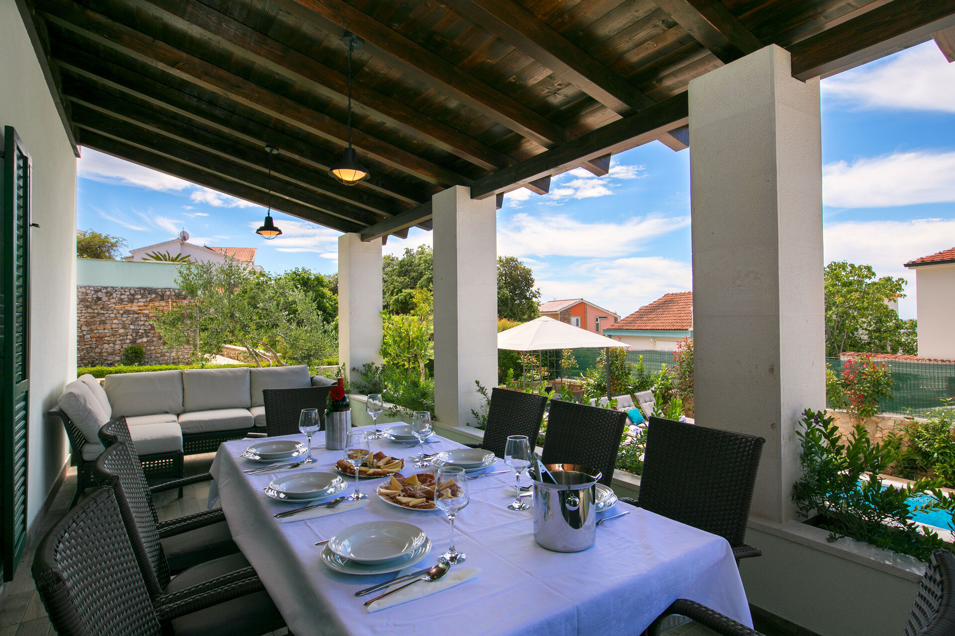 wi-fi zdarma, částečný pohled na moře, Rozloha vnitřního prostoru je 150 m2, Ložnice: 4, Koupelny: 3, Balkony: 1, klimatizace započítána v ceně.