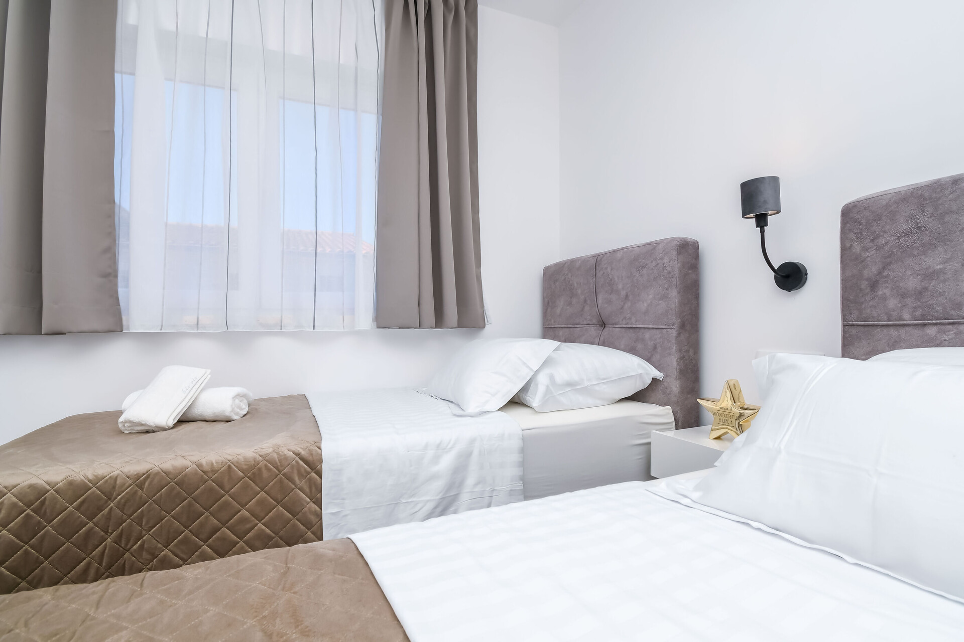 • Postele: dvě oddvojené postele. Ložní prádlo je k dispozici.