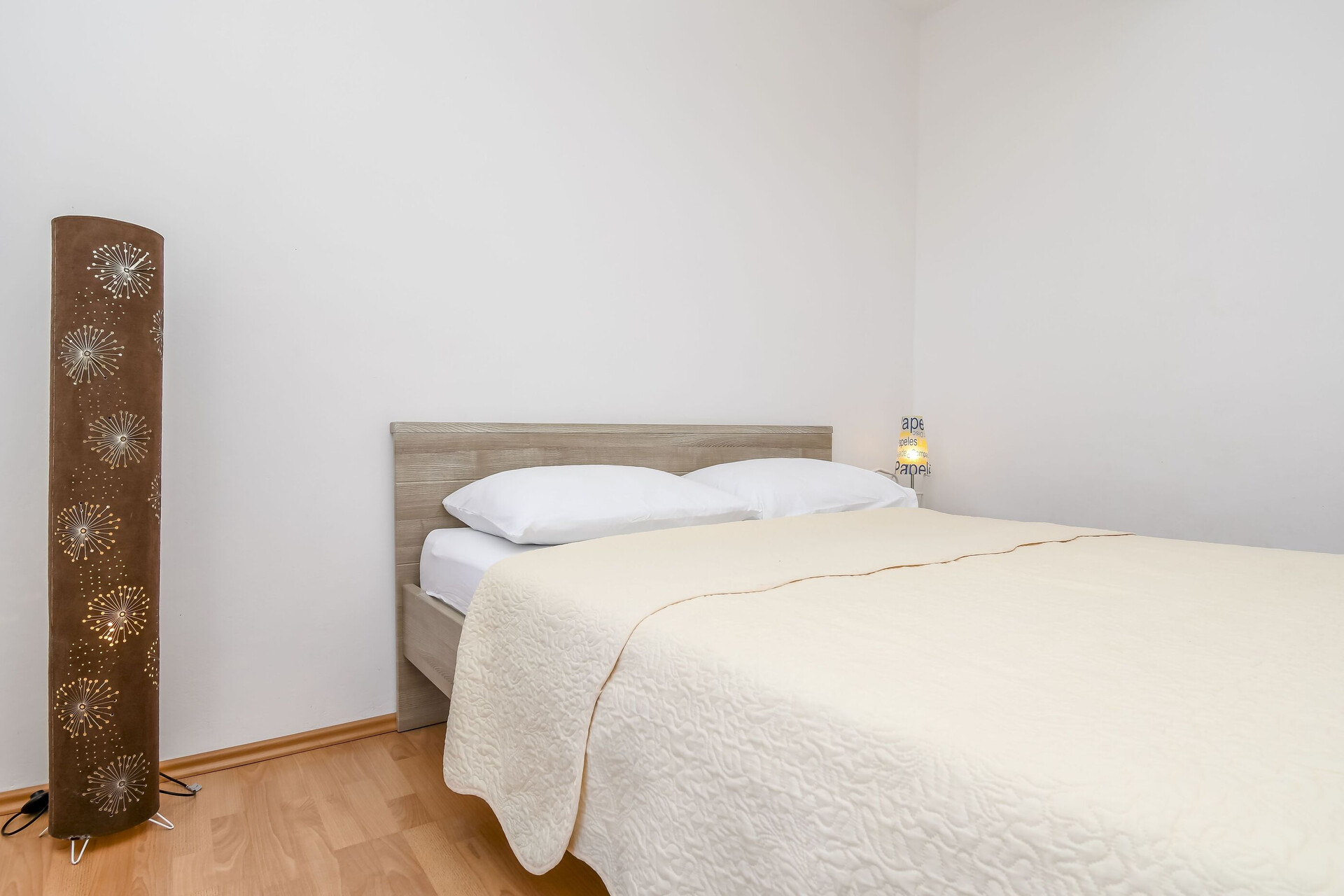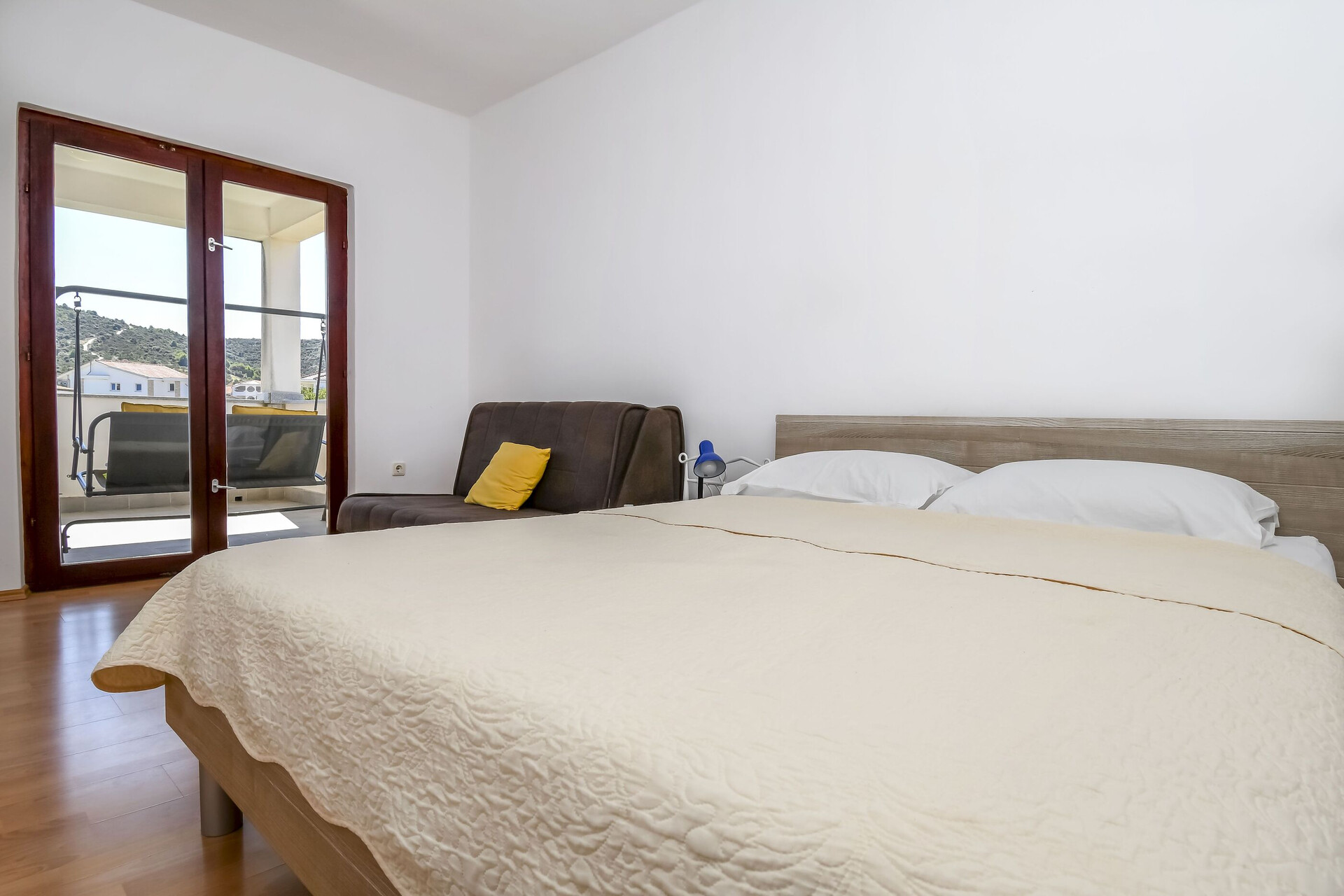 • Postele: manželská postel. Ložní prádlo je k dispozici. Z pokoje se vychází na balkon.