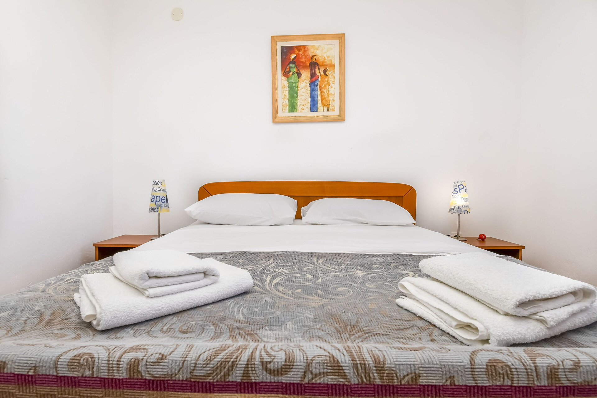 • Postele: manželská postel. Pokoj má přistýlku: jedna přistýlka. Ložní prádlo je k dispozici. Z pokoje se vychází na balkon.