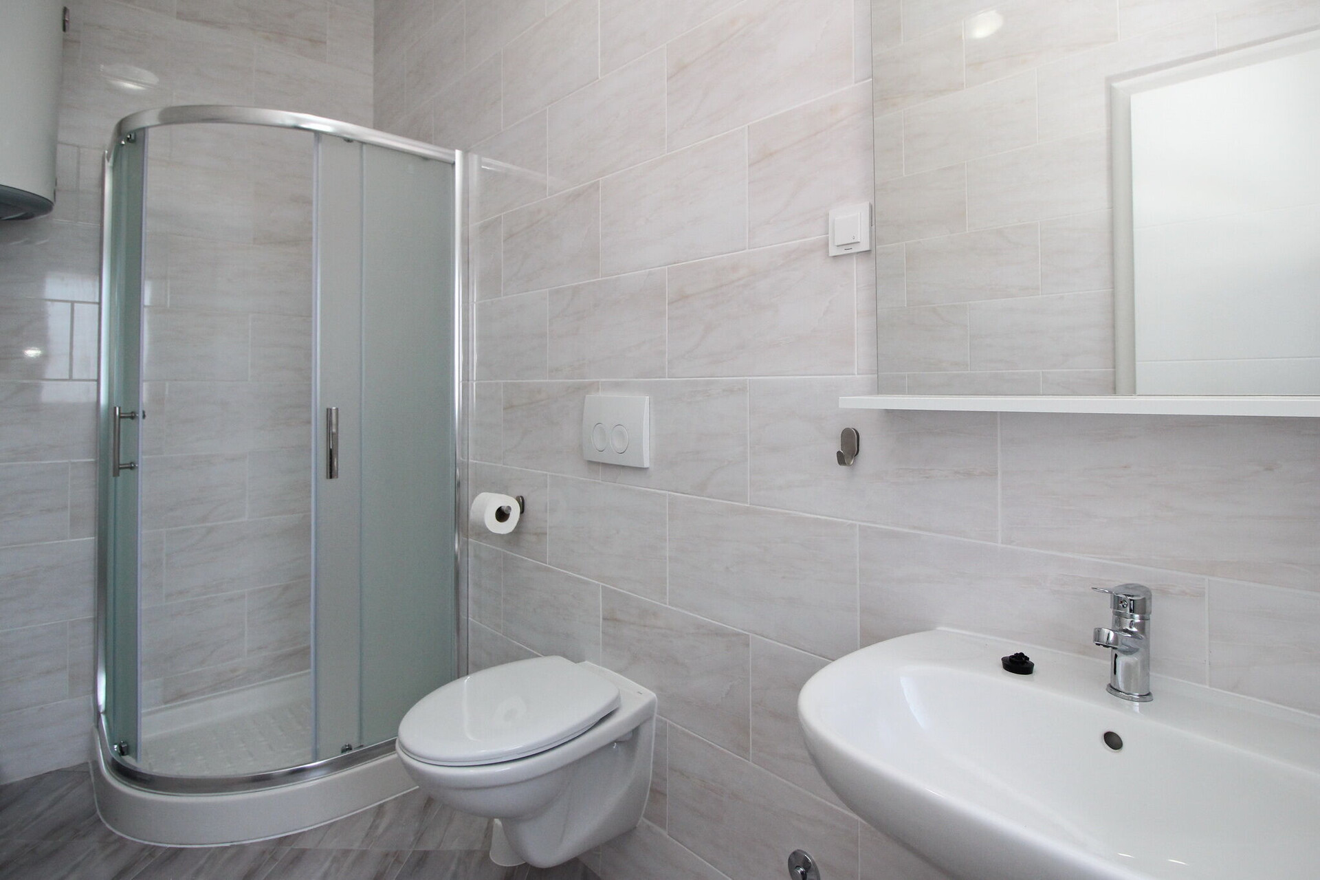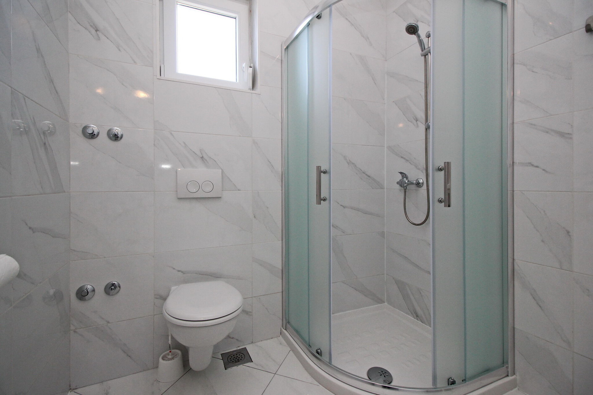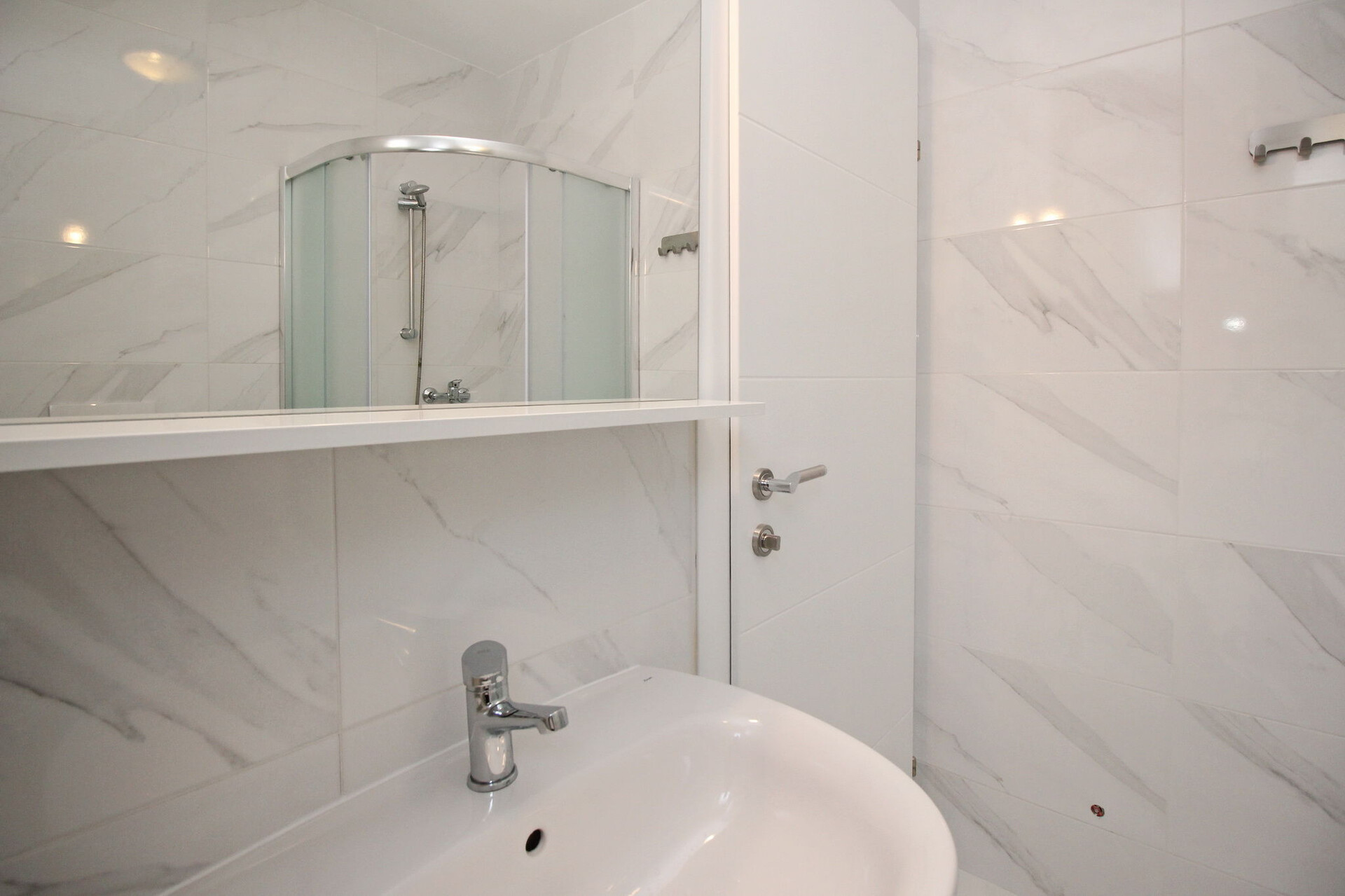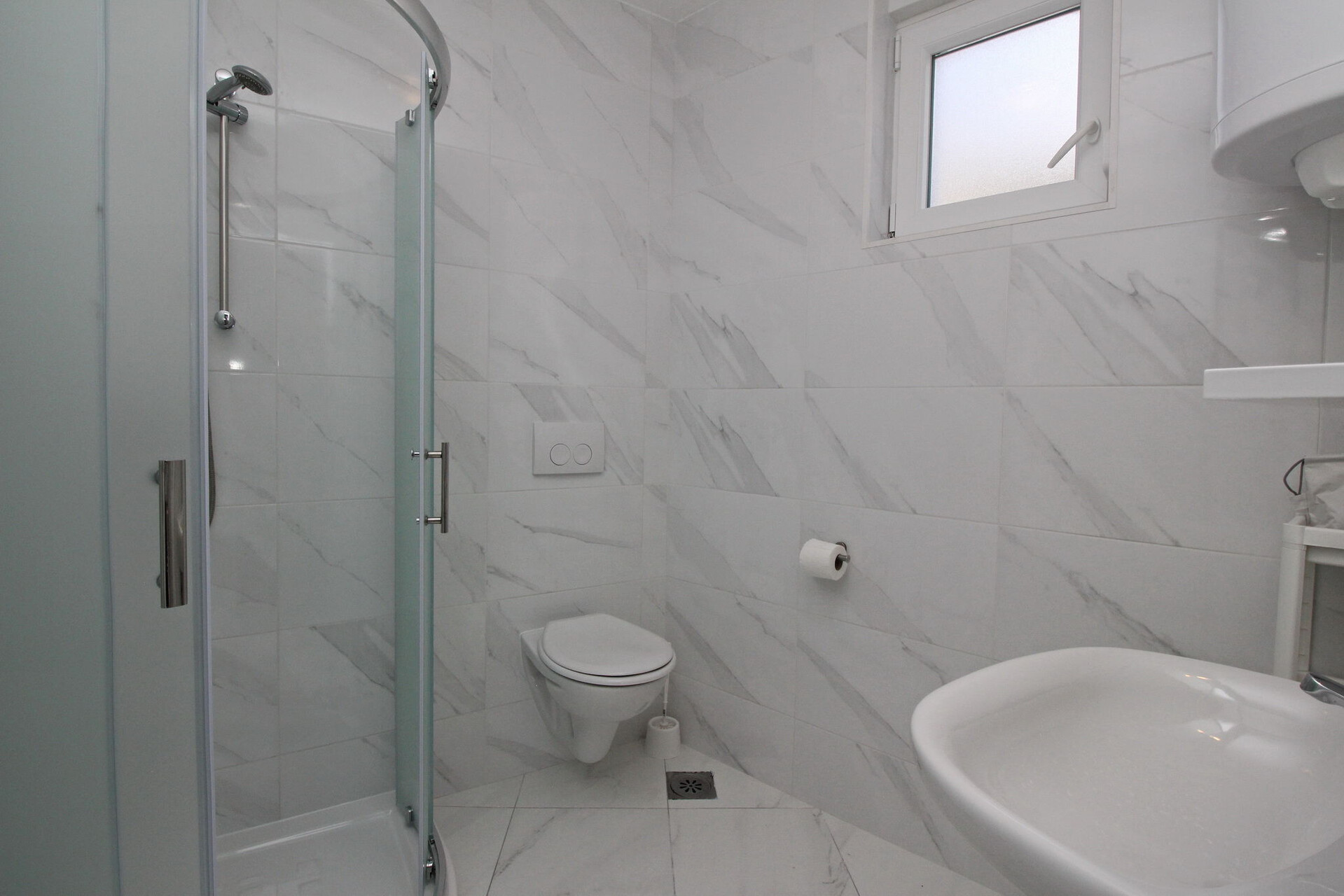 • Dusche, Duschkabine, Handtücher.