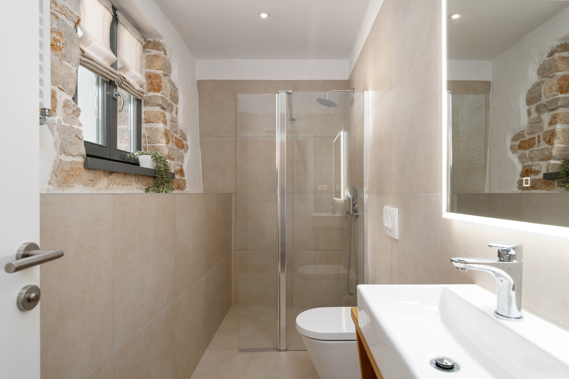 • Dusche, Duschkabine, Waschmaschine, Fön, Handtücher.