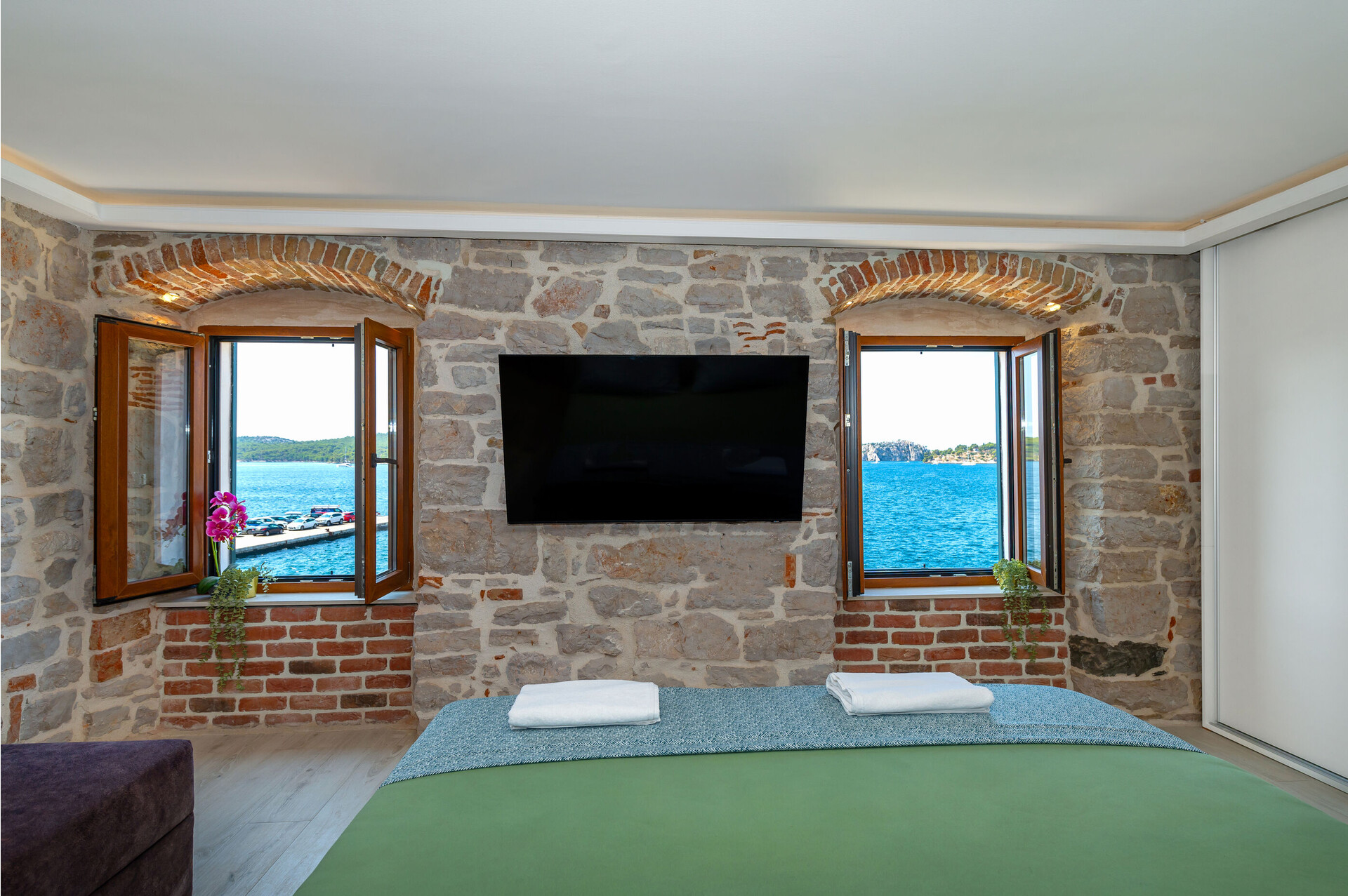 • WIFI kostenlos, Meerblick, Oberfläche des Innenraums ist 45 m2 (ohne Terrasse und Hof), die Einheit befindet sich, Badezimmer: 2, Klimaanlage im Preis inbegriffen.