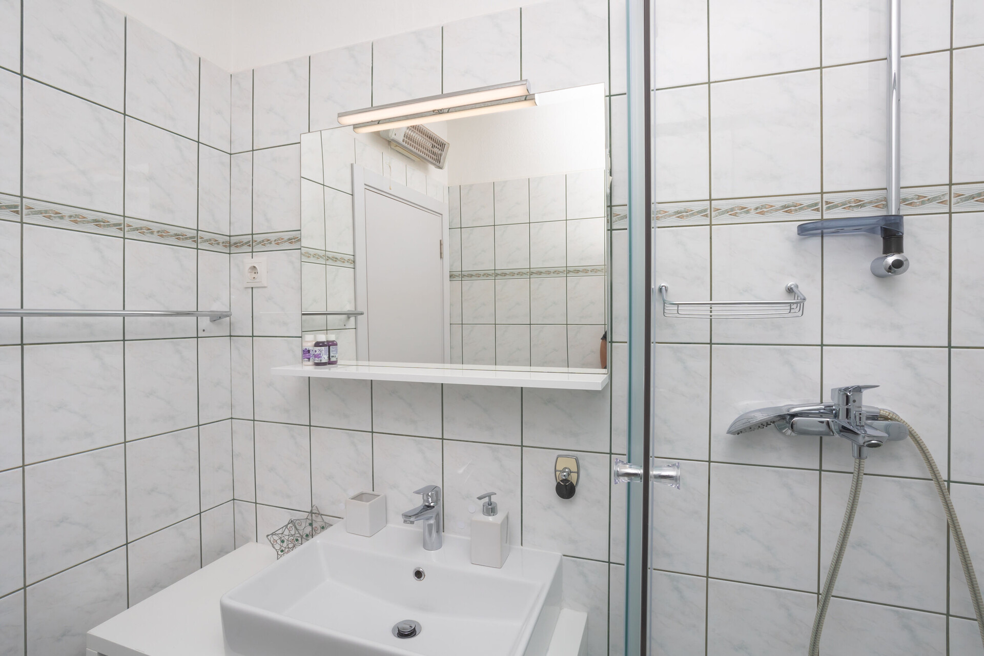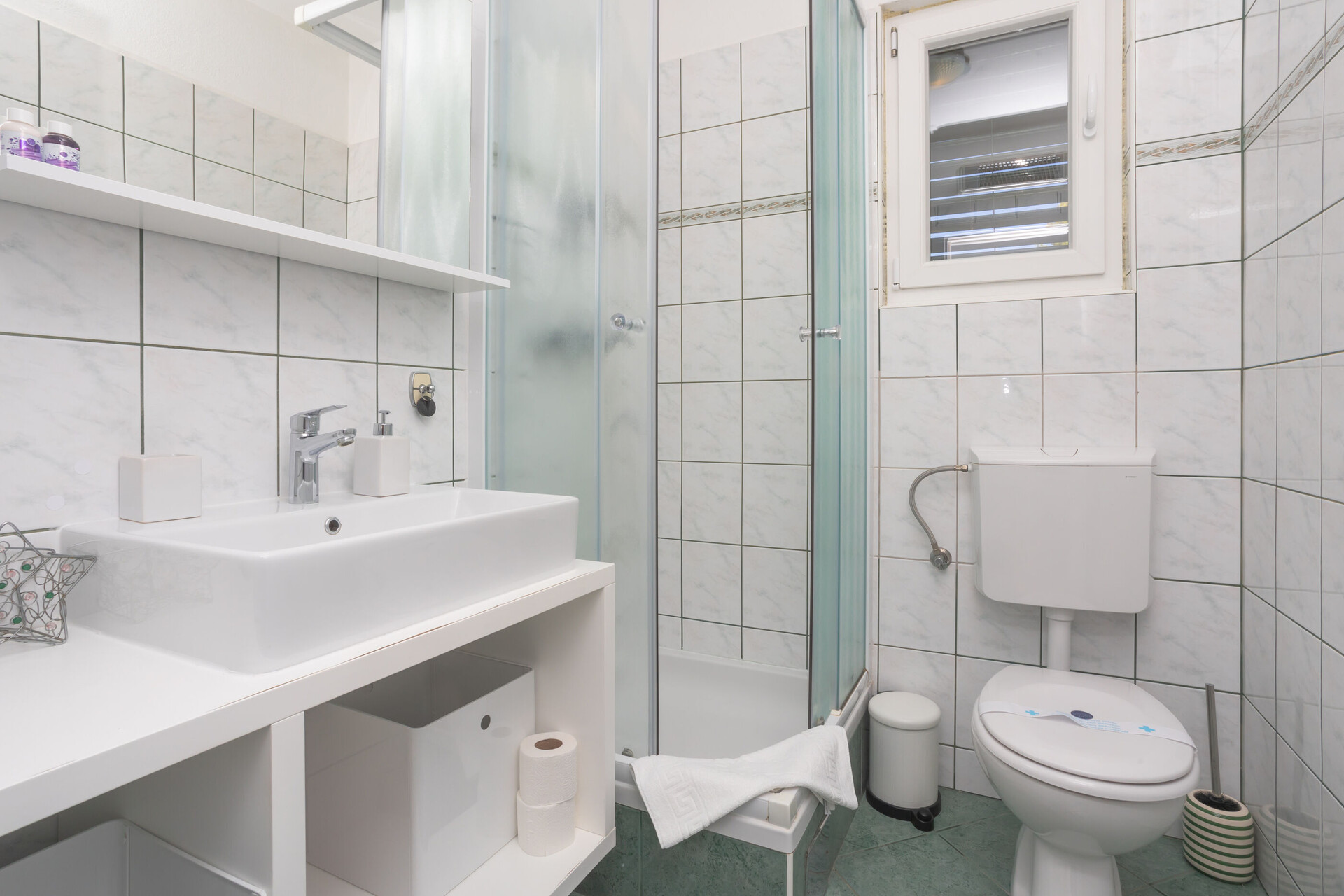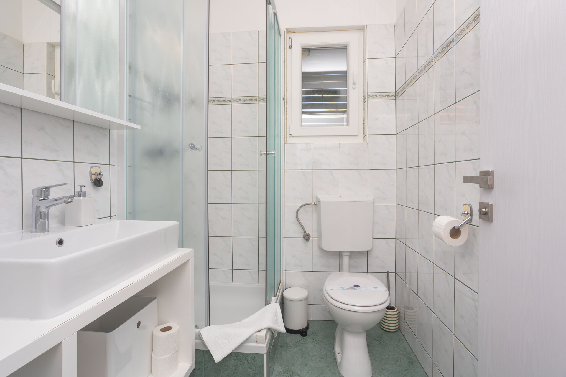 • ducha, cabina de ducha, toallas.