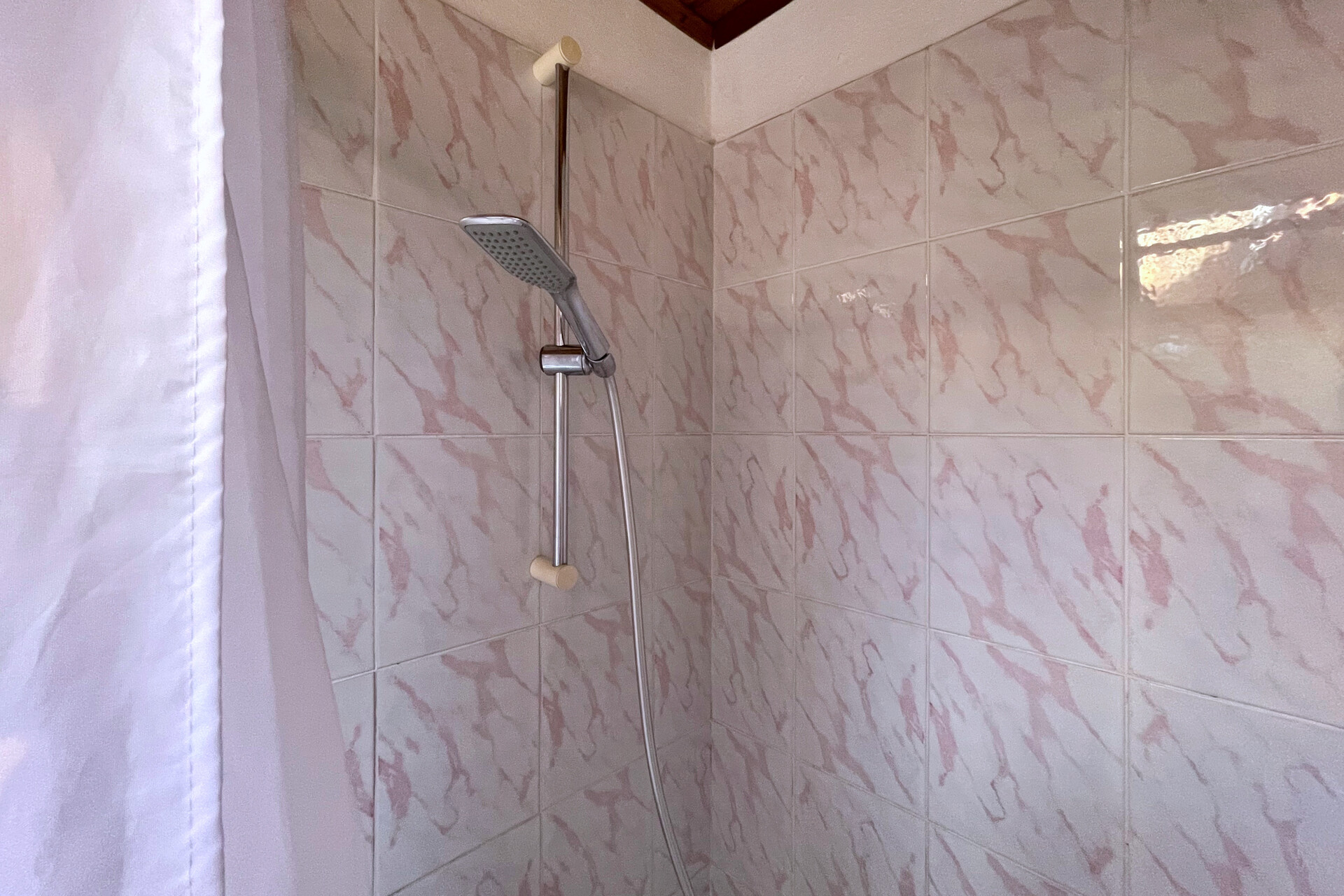 • ducha, cabina de ducha, lavadora, secadora de pelo, toallas.