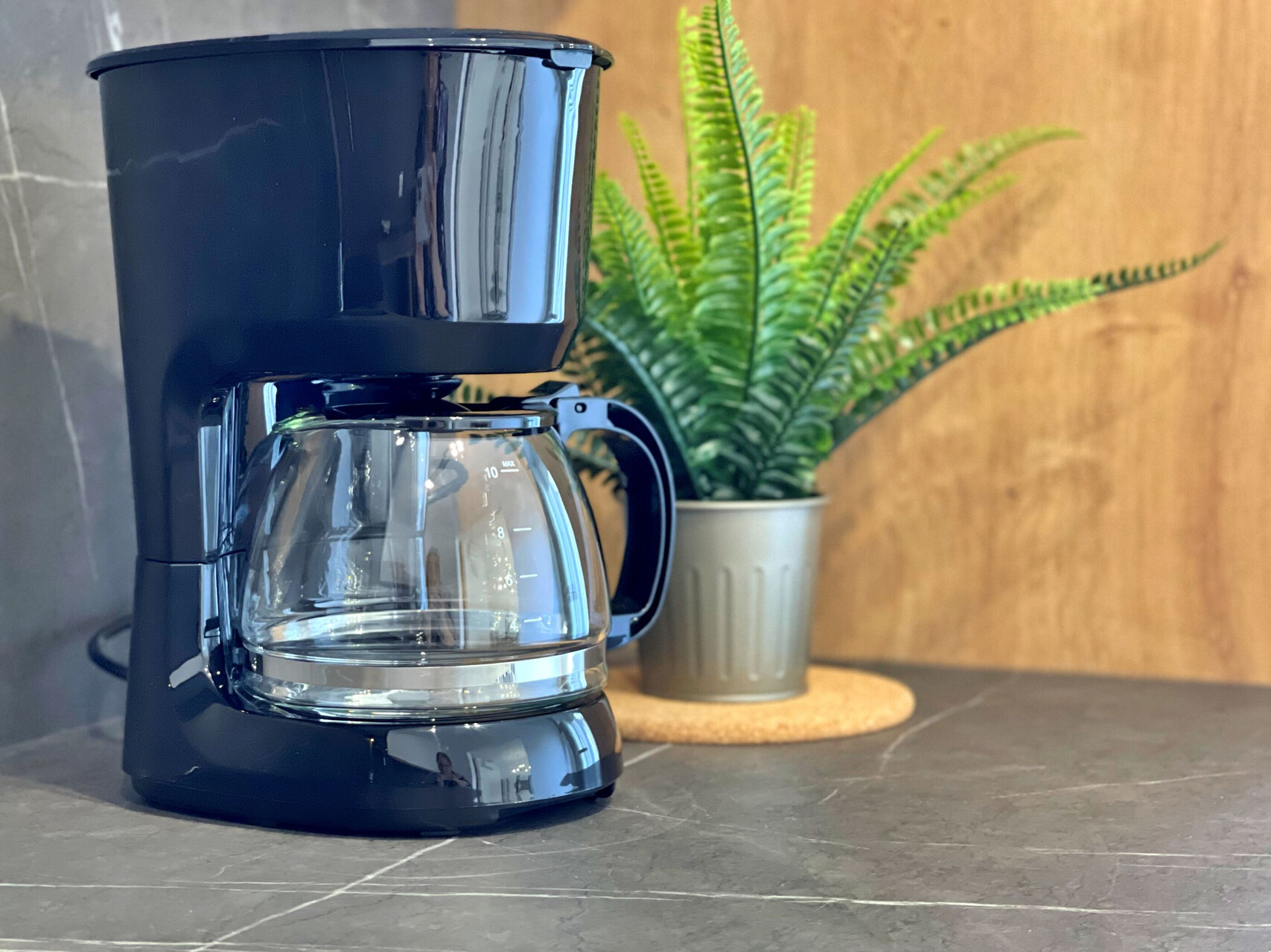 • mesa y sillas, fregadero, nevera, congelador, caldera de café, cafetière, microonda, tostadora, lavavajillas, estufa de cocina.