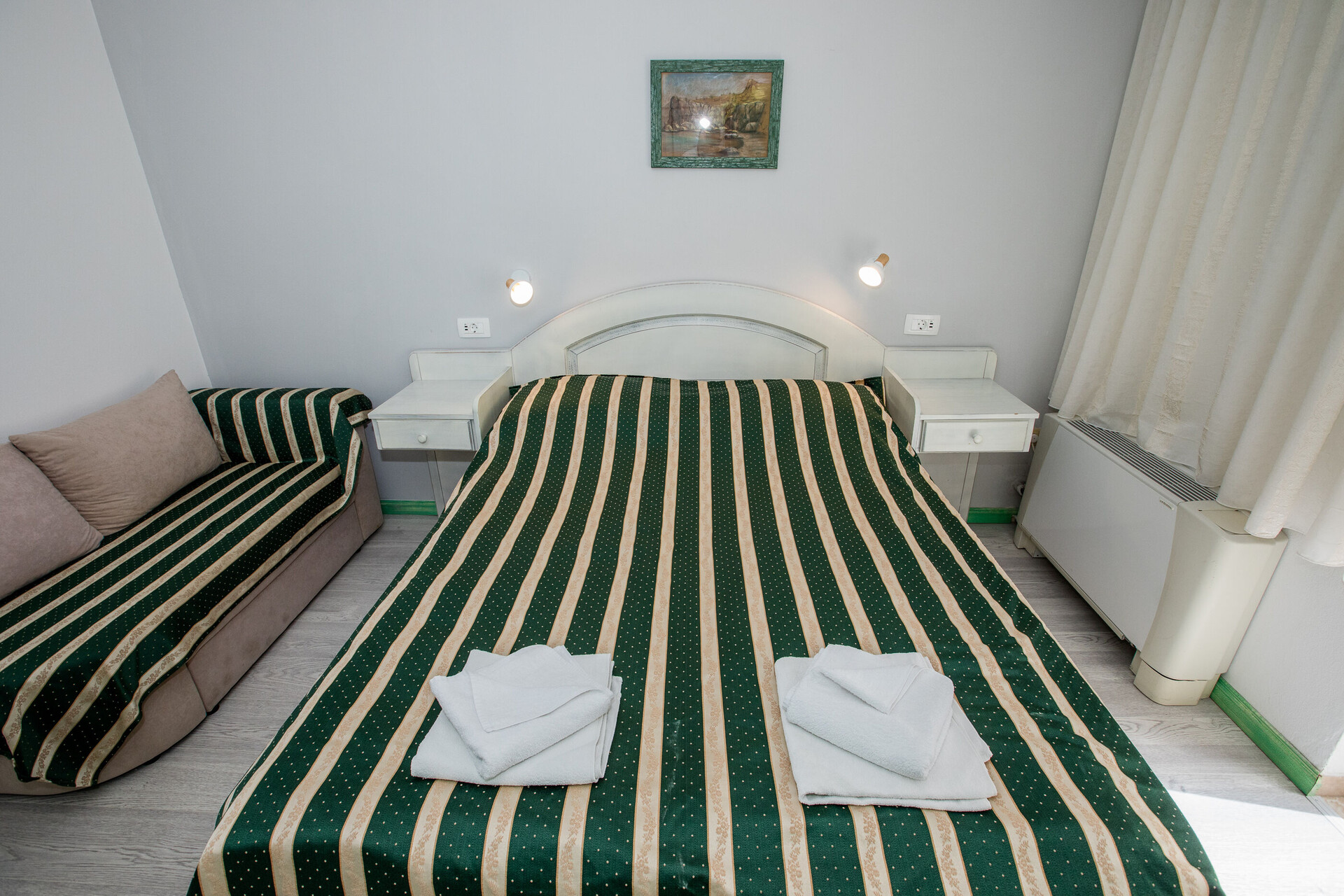 • El número de estrellas. La superficie total del espacio interior es 25 m2. Las camas en las habitaciones. La habitacion tiene las camas supletorias . El piso de la unidad.