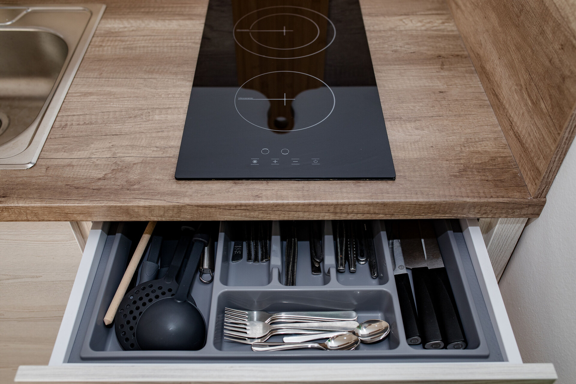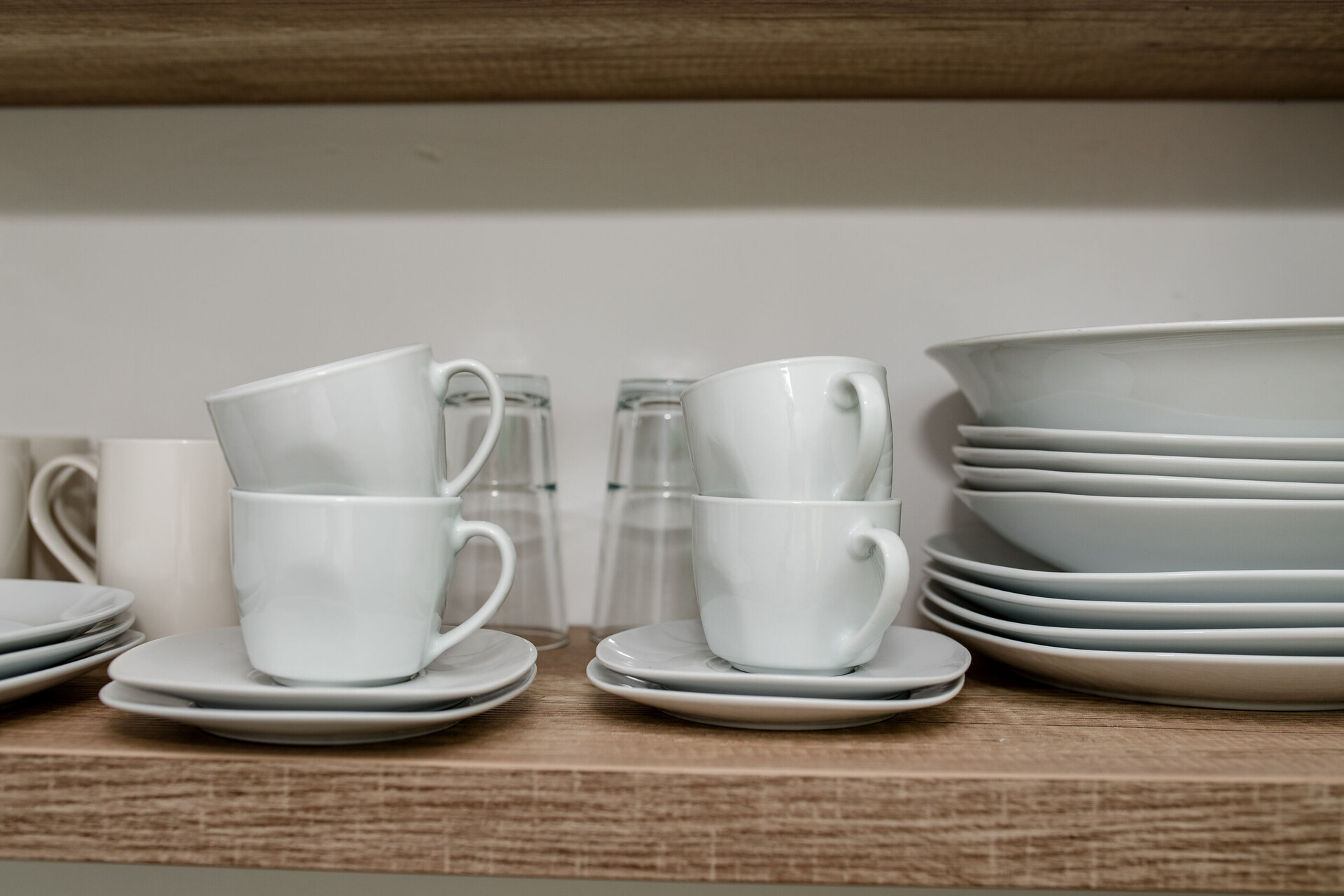 • mesa y sillas, fregadero, nevera, congelador, estufa de cocina.