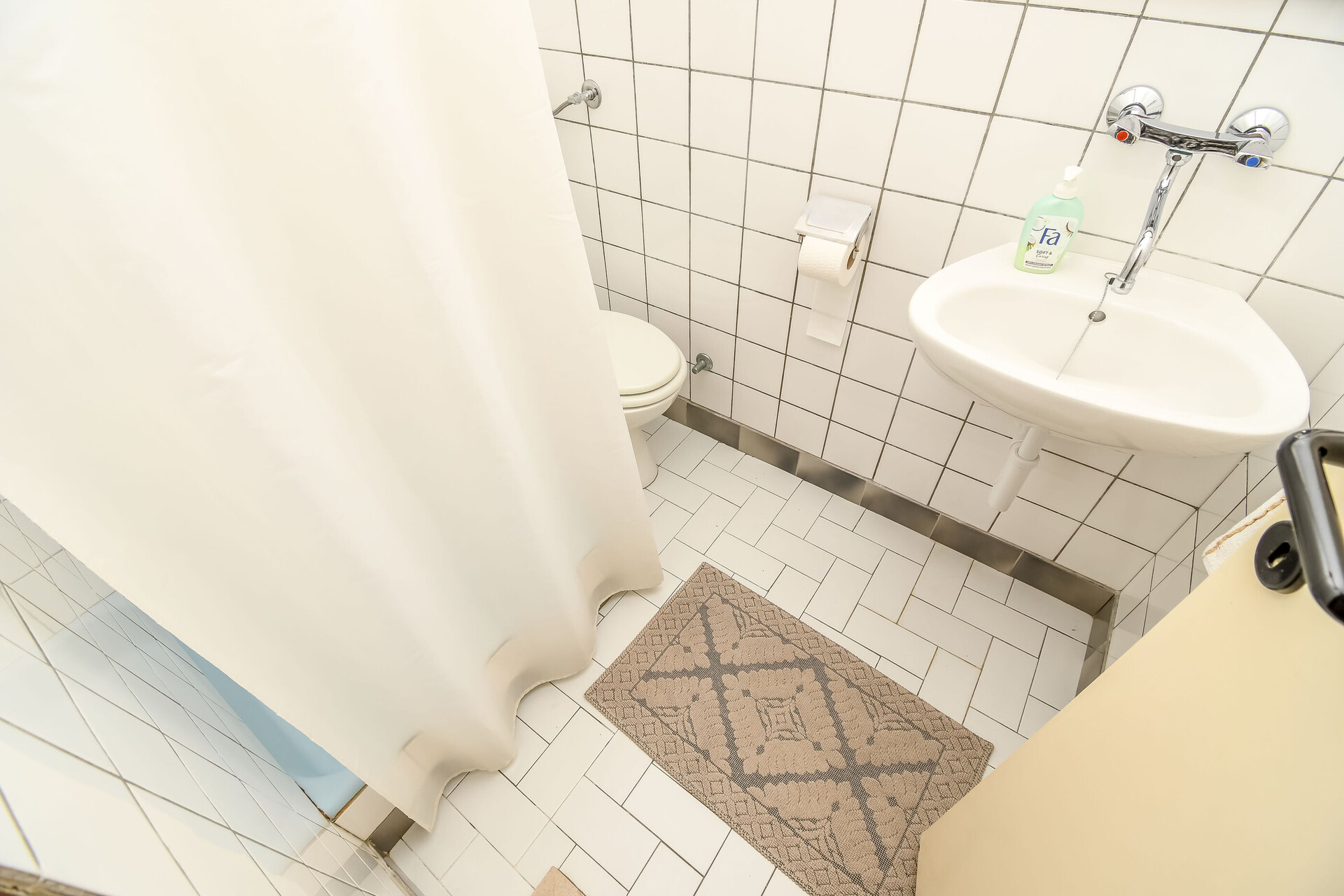 • douche, cabine de douche, sèche-cheveux, serviettes de toilette.