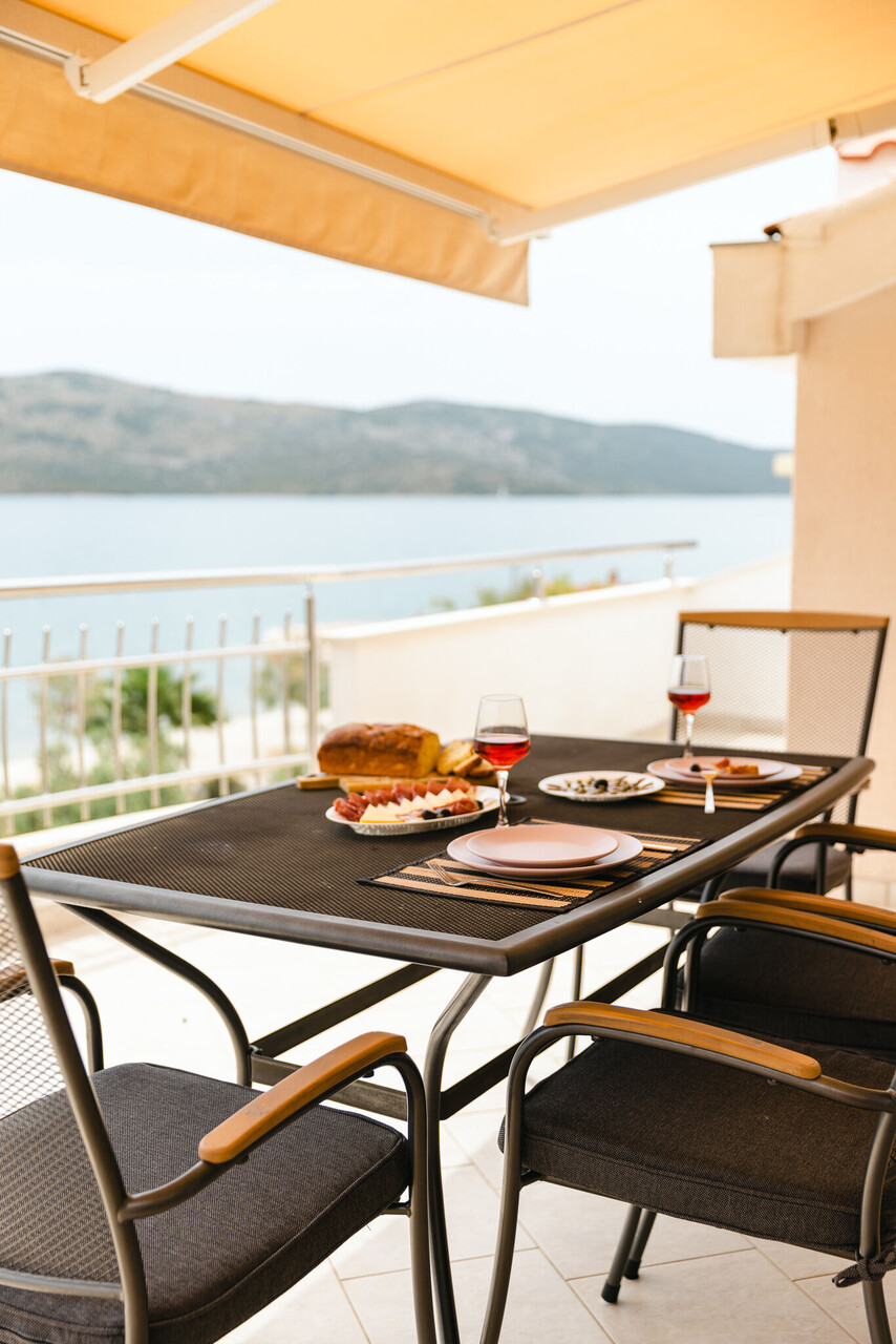 • WiFi gratuit, vue sur la mer, La surface totale de l'espace iintérieur est de 60 m2 (sans la cour et la terrasse), l'unité est située au au deuxième étage étage, chambres: 2, salles de bain: 1, balcons: 1, TV, climatiseur inclus dans le prix.