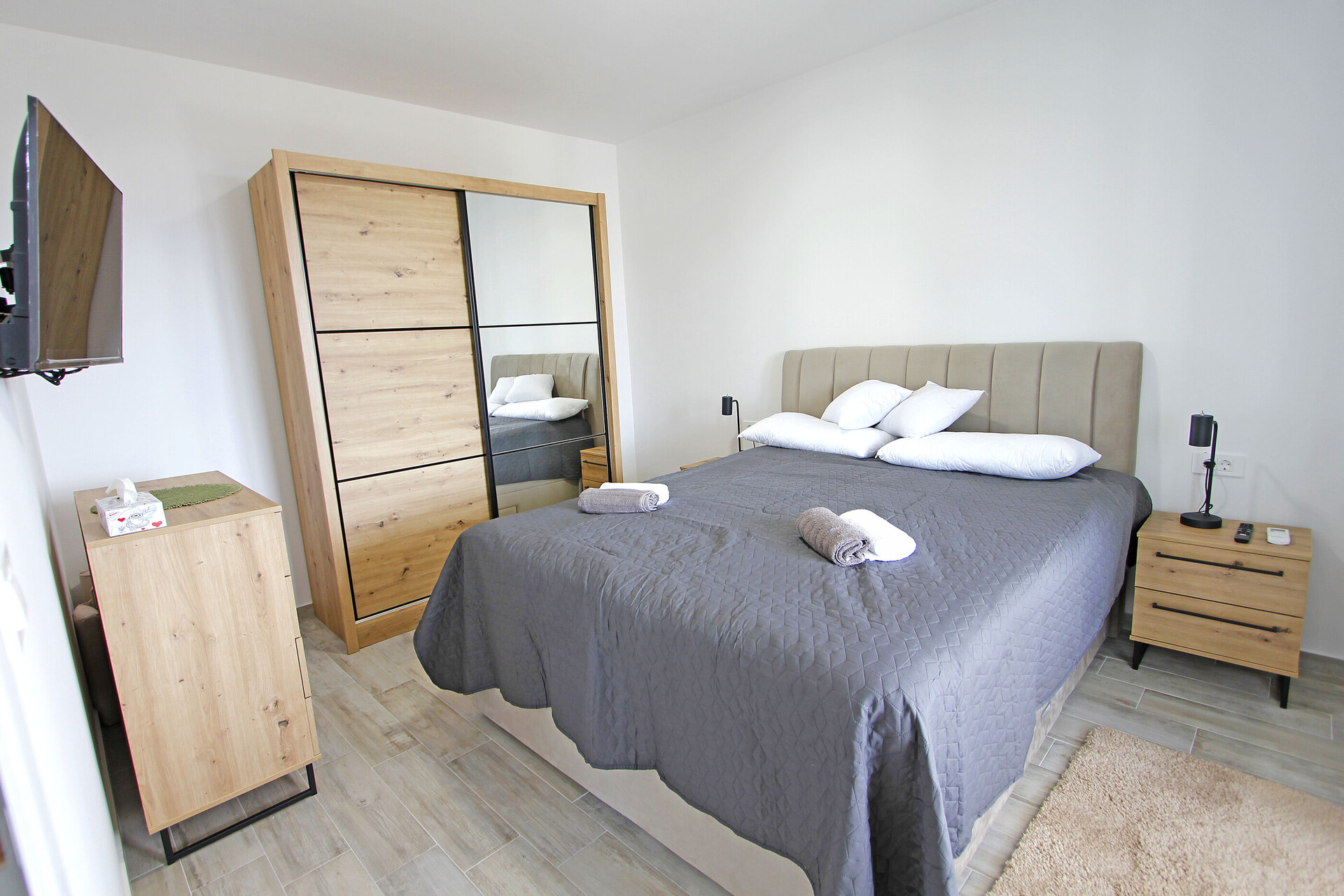 • WiFi gratuit, vue sur la mer, La surface totale de l'espace iintérieur est de 100 m2 (sans la cour et la terrasse), l'unité est située au au premier étage étage, chambres: 2, salles de bain: 1, balcons: 1, climatiseur inclus dans le prix, TV.