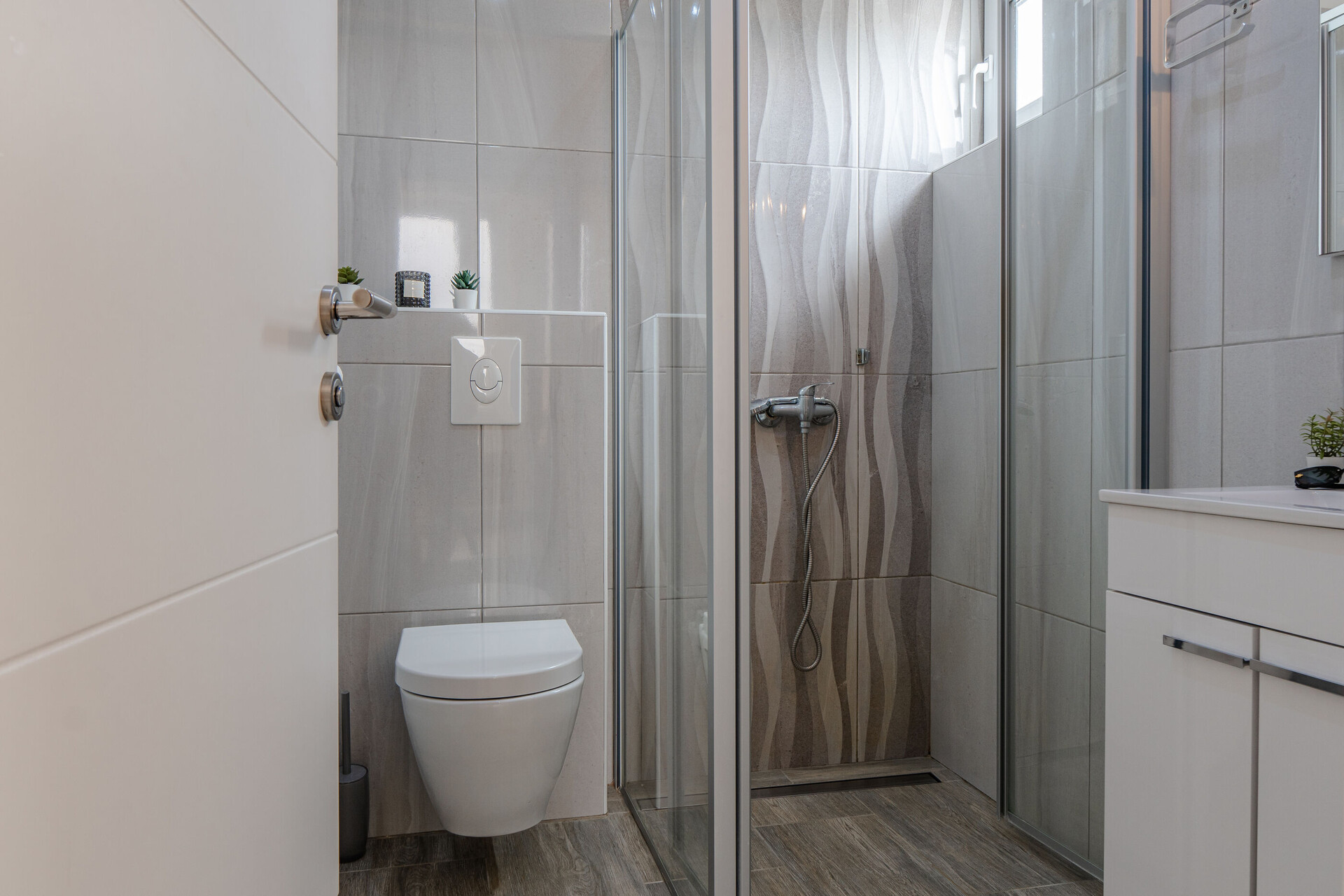 • WiFi gratuit, vue partielle sur la mer, La surface totale de l'espace iintérieur est de 250 m2 (sans la cour et la terrasse), chambres: 5, salles de bain: 4, balcons: 1, climatiseur inclus dans le prix, TV, chaînes par satellite.