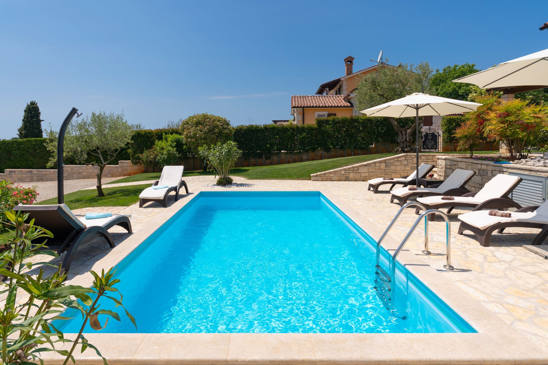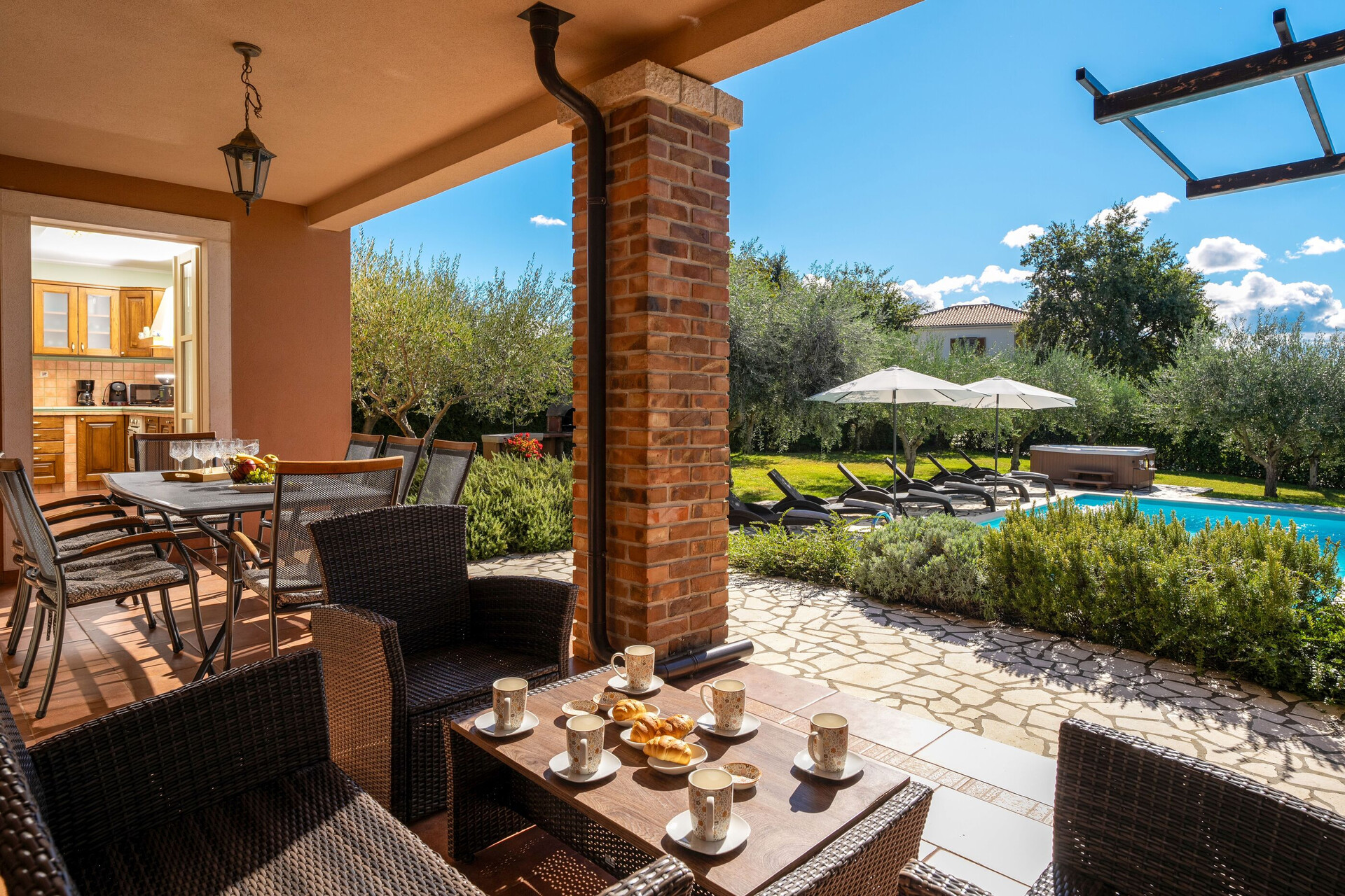 WiFi gratuit, vue sur le jardin, La surface totale de l'espace iintérieur est de 150 m2 (sans la cour et la terrasse), chambres: 4, salles de bain: 4, balcons: 1, climatiseur inclus dans le prix, TV, chaînes par satellite.