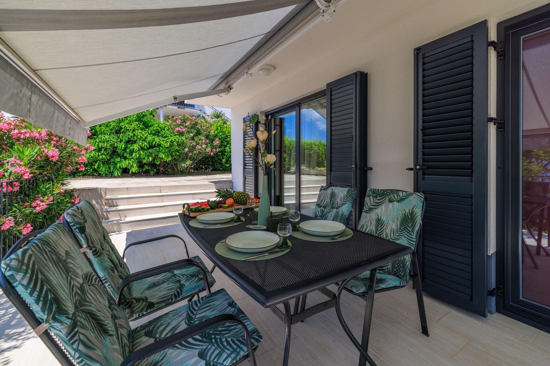 • WiFi gratuit, La surface totale de l'espace iintérieur est de 65 m2 (sans la cour et la terrasse), l'unité est située au au rez-de-chaussée étage, chambres: 2, salles de bain: 2, balcons: 1, climatiseur inclus dans le prix, TV, chaînes par satellite.