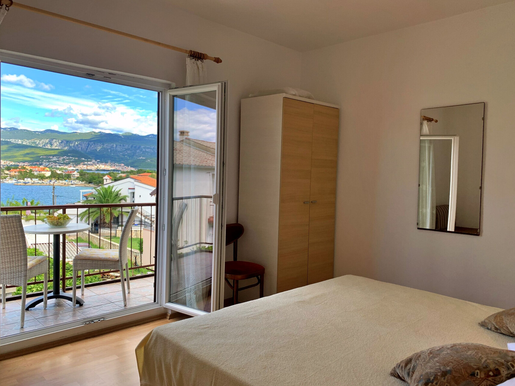 • Beds: Double bed. Bedding is available. Room has an exit to the balcony.