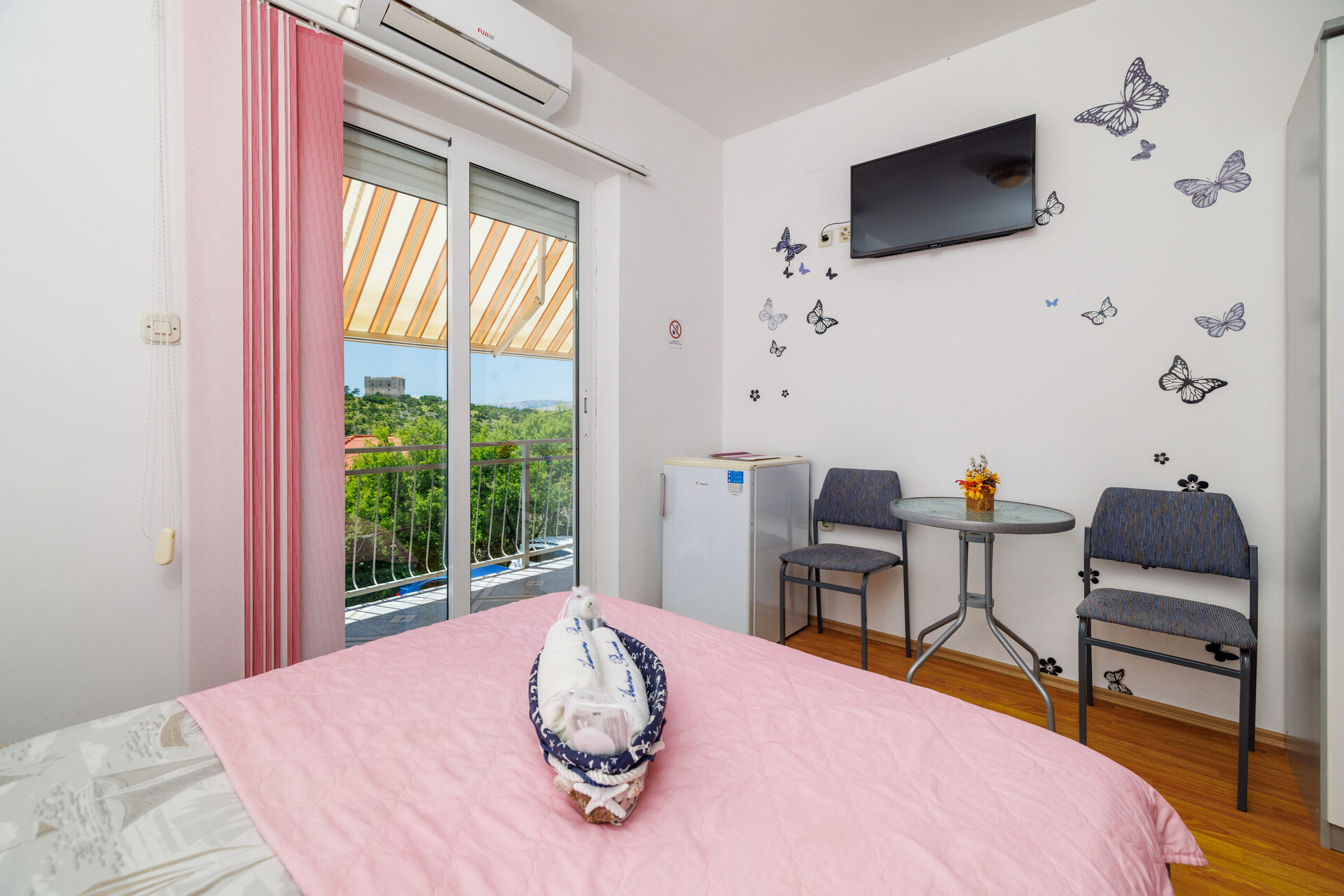 • Beds: Double bed. Room has an extra bed: one extra bed. Bedding is available. Room has an exit to the balcony.