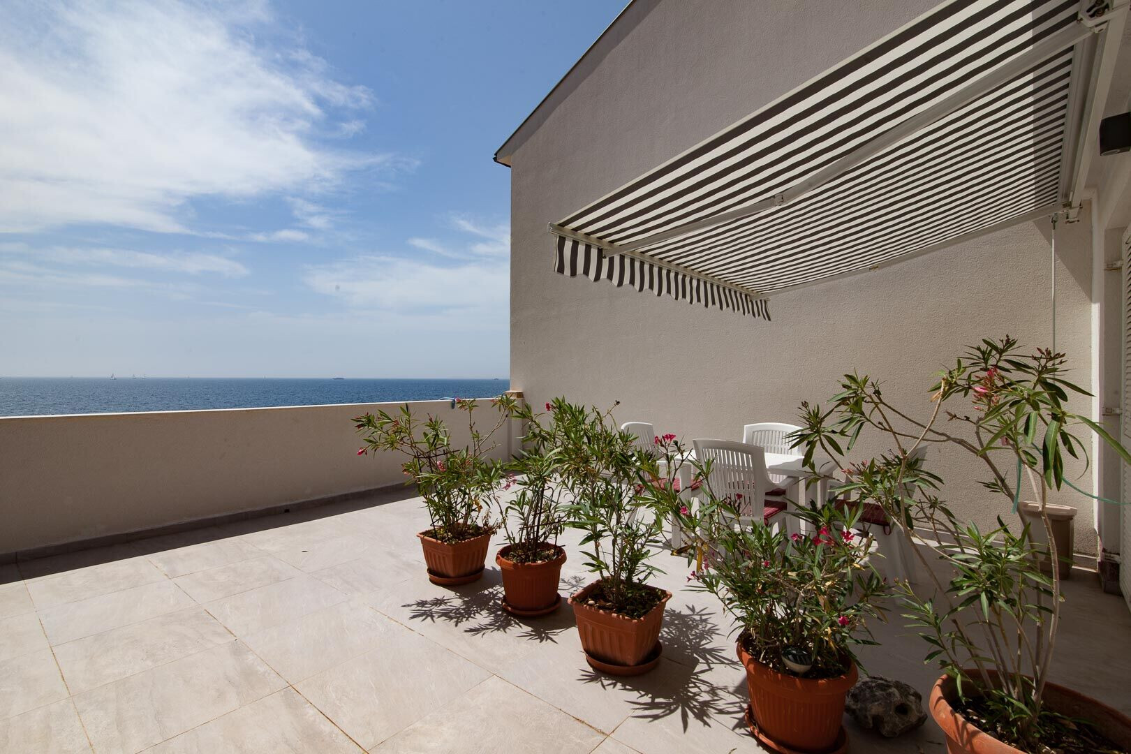 wifi included in the price, sea view, Total surface area of the interior is: 90 m2, Unit is on: at the first floor, Bedrooms: 2, bathrooms: 2, balconies: 1, air conditioning included in the price, TV set, satellite tv.