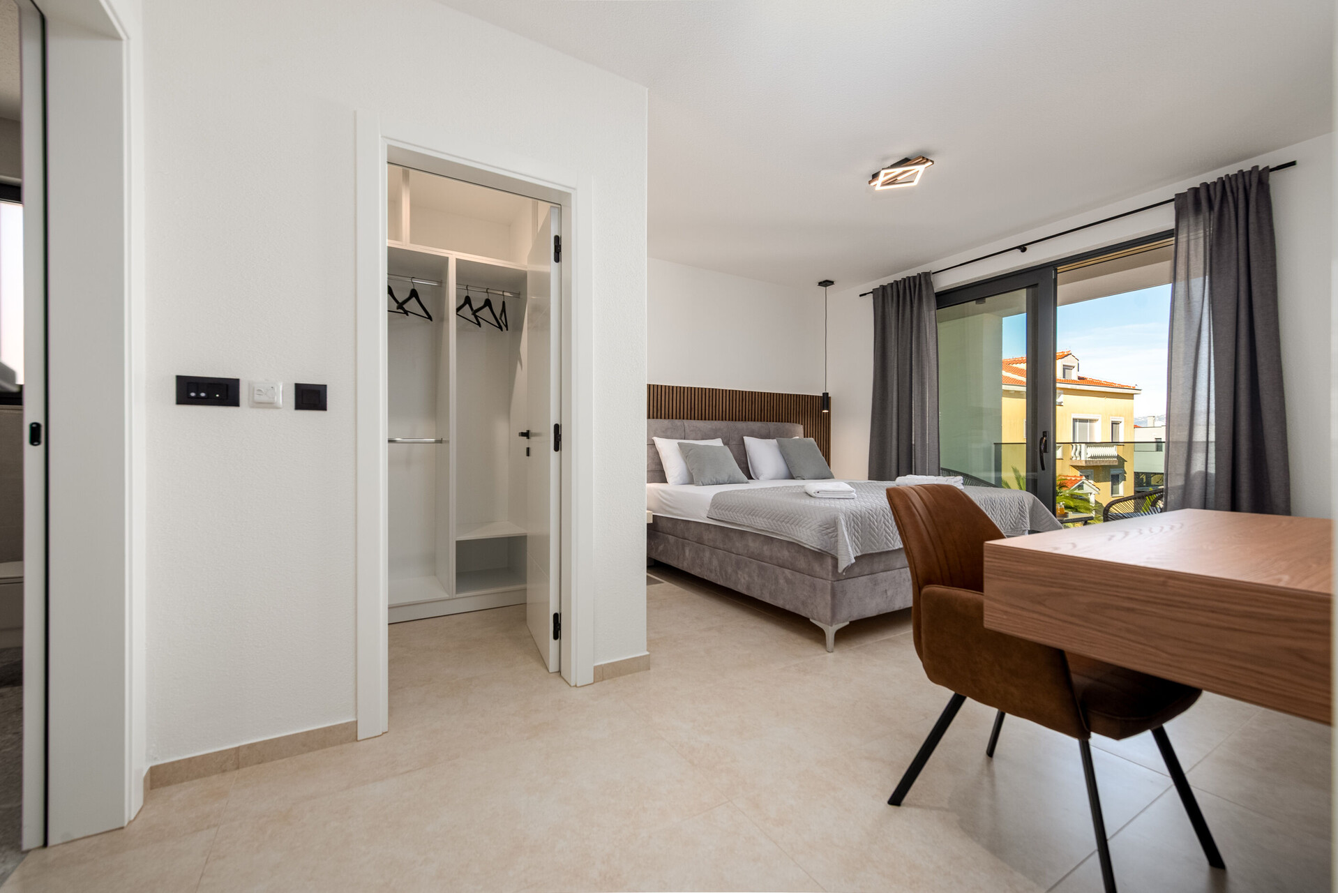 • Beds: Double bed. Bedding is available. Room has an exit to the balcony.