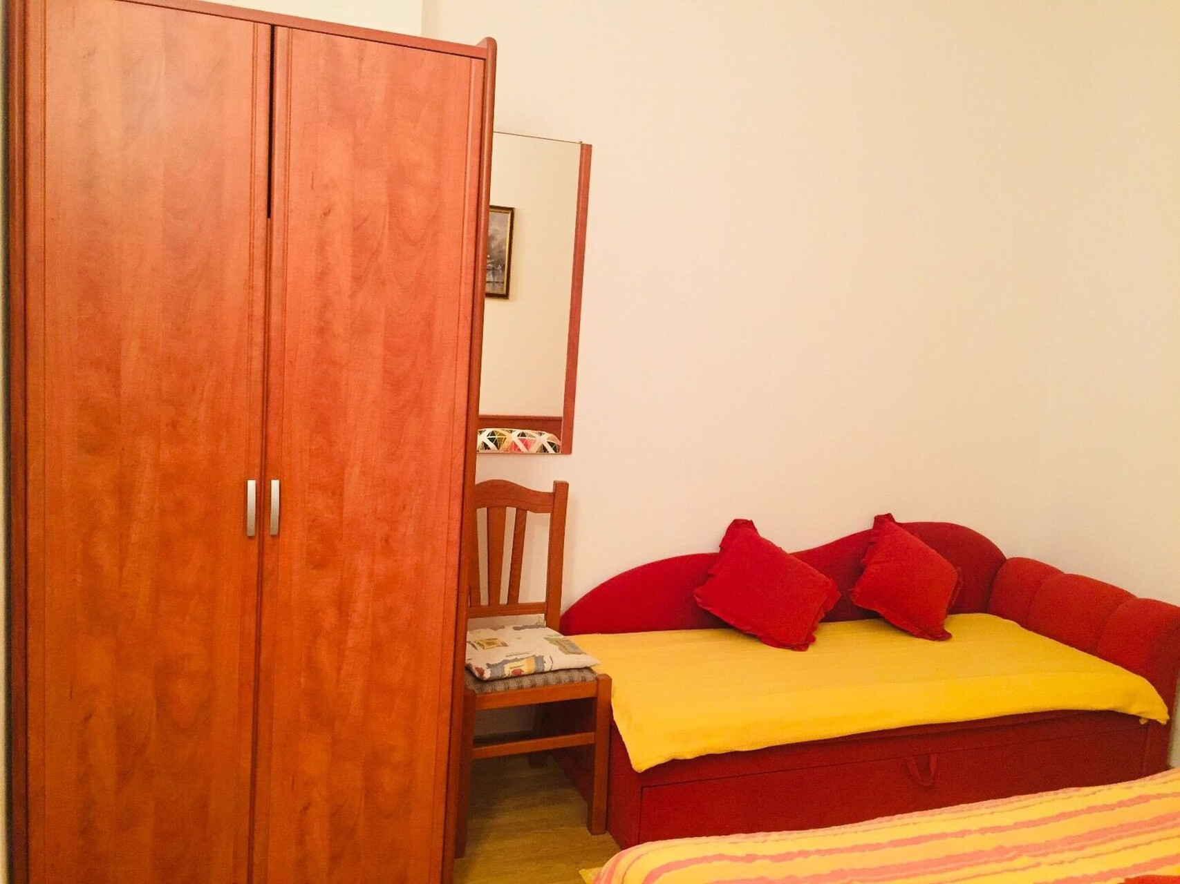 • Beds: Double bed. Room has an extra bed: one extra bed. Bedding is available. Room has an exit to the balcony.