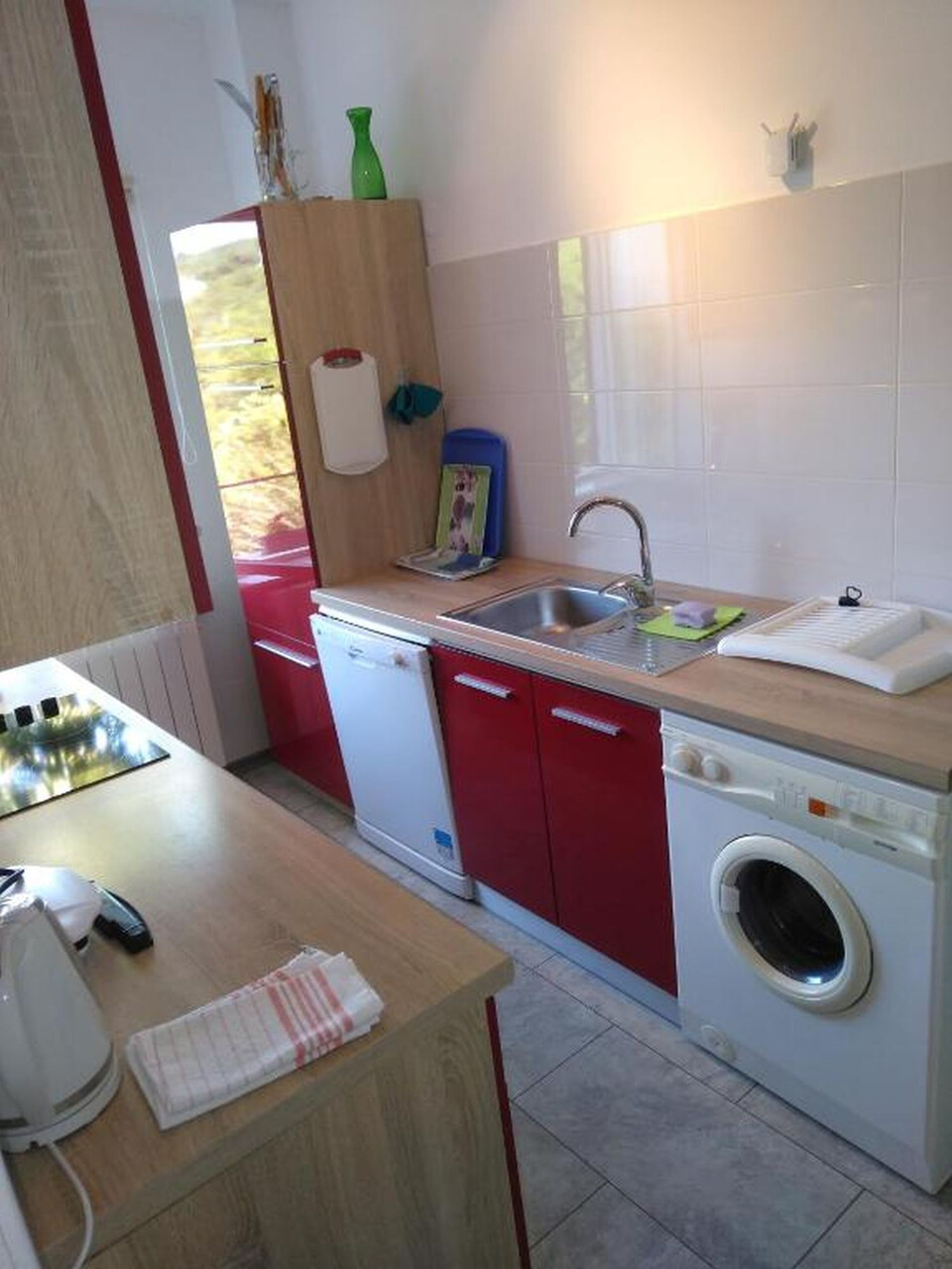 • stol i stolice, sudoper, pećnica, hladnjak, zamrzivač, aparat - kuhalo za vodu, aparat za filter kavu, mikrovalna, toster, stroj za pranje posuđa, ploča za kuhanje.