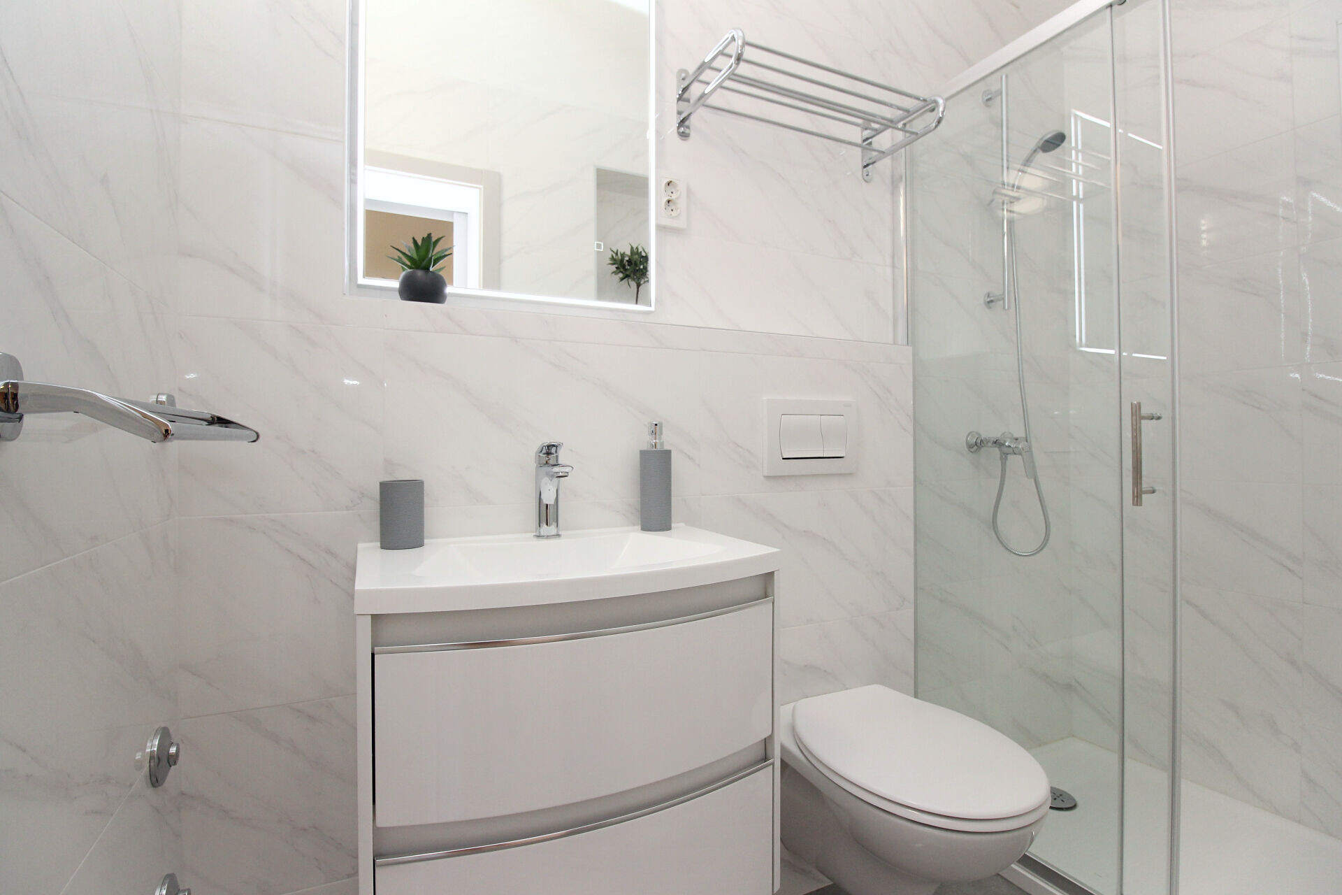 • tuš, tuš kabina, ručnici.