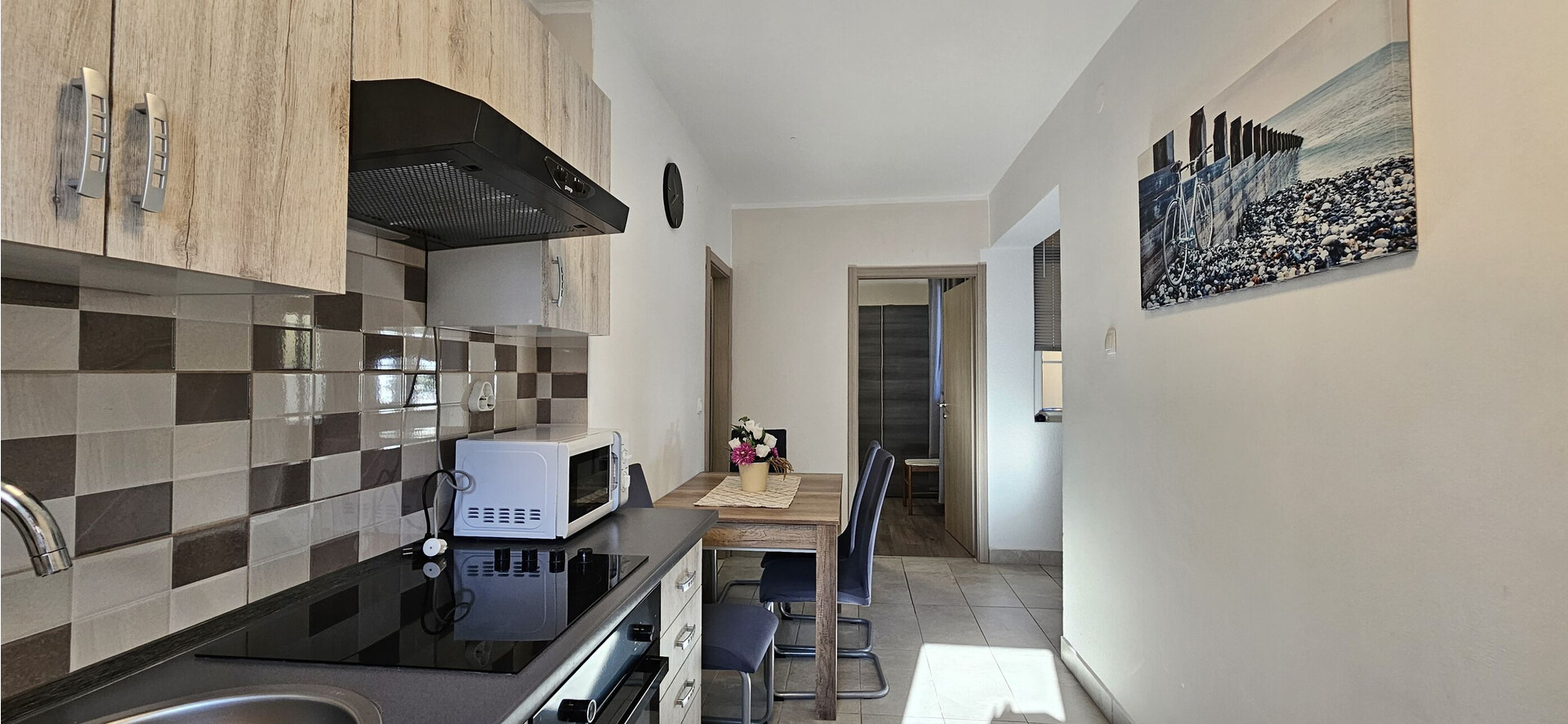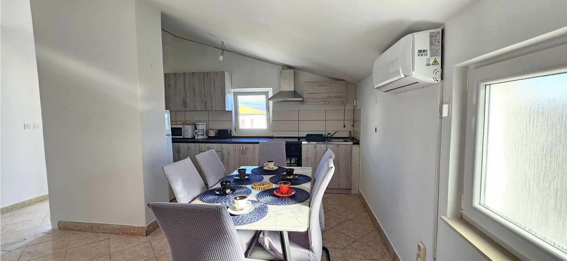 • stol i stolice, sudoper, pećnica, hladnjak, zamrzivač, aparat za filter kavu, ploča za kuhanje.