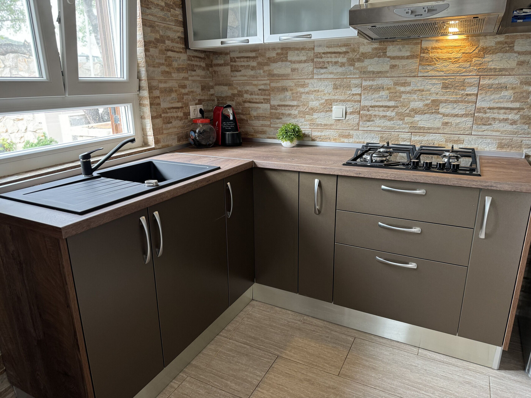 • stol i stolice, sudoper, hladnjak, zamrzivač, aparat za filter kavu, ploča za kuhanje.