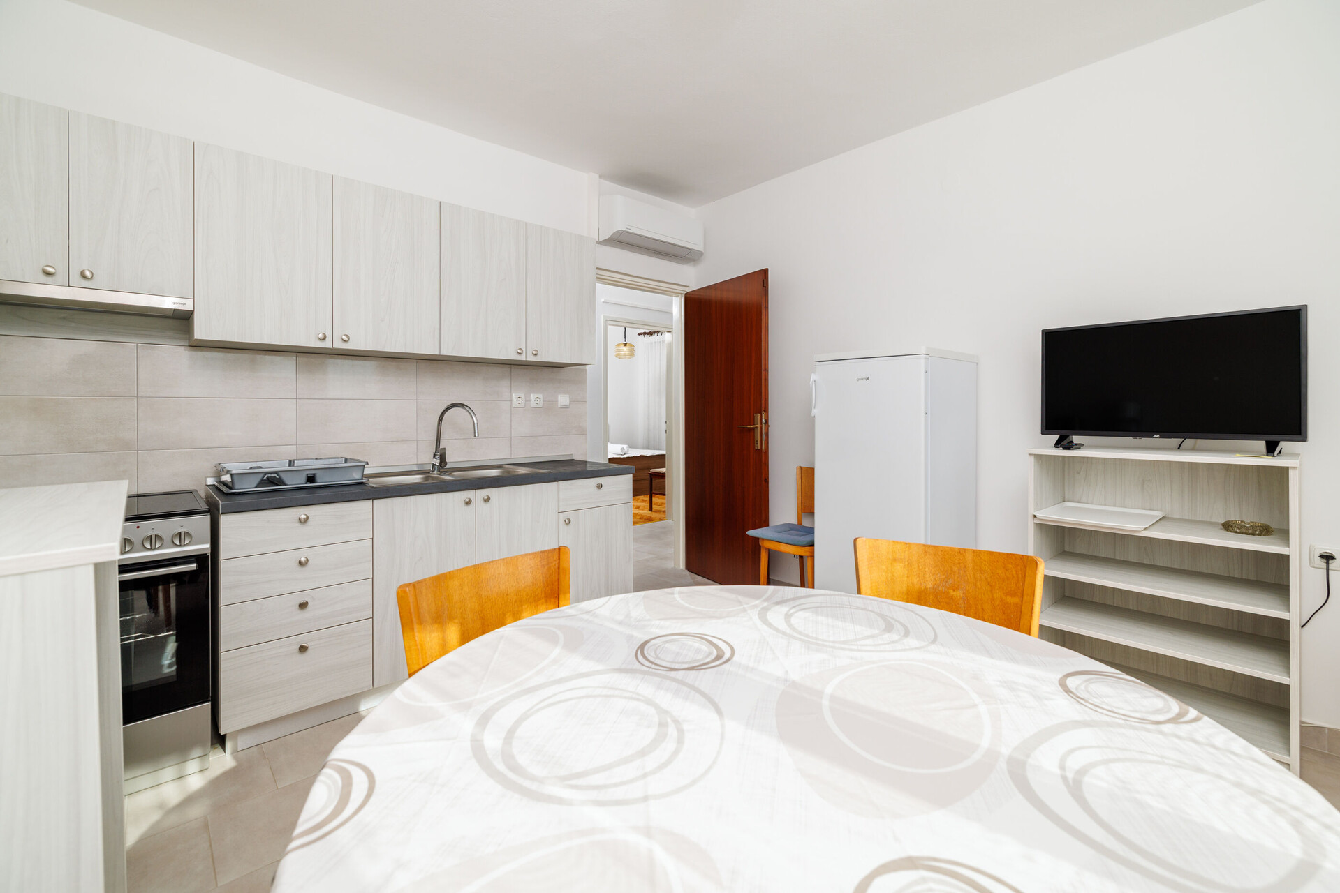 • stol i stolice, sudoper, pećnica, hladnjak, zamrzivač, aparat - kuhalo za vodu, aparat za filter kavu, ploča za kuhanje.