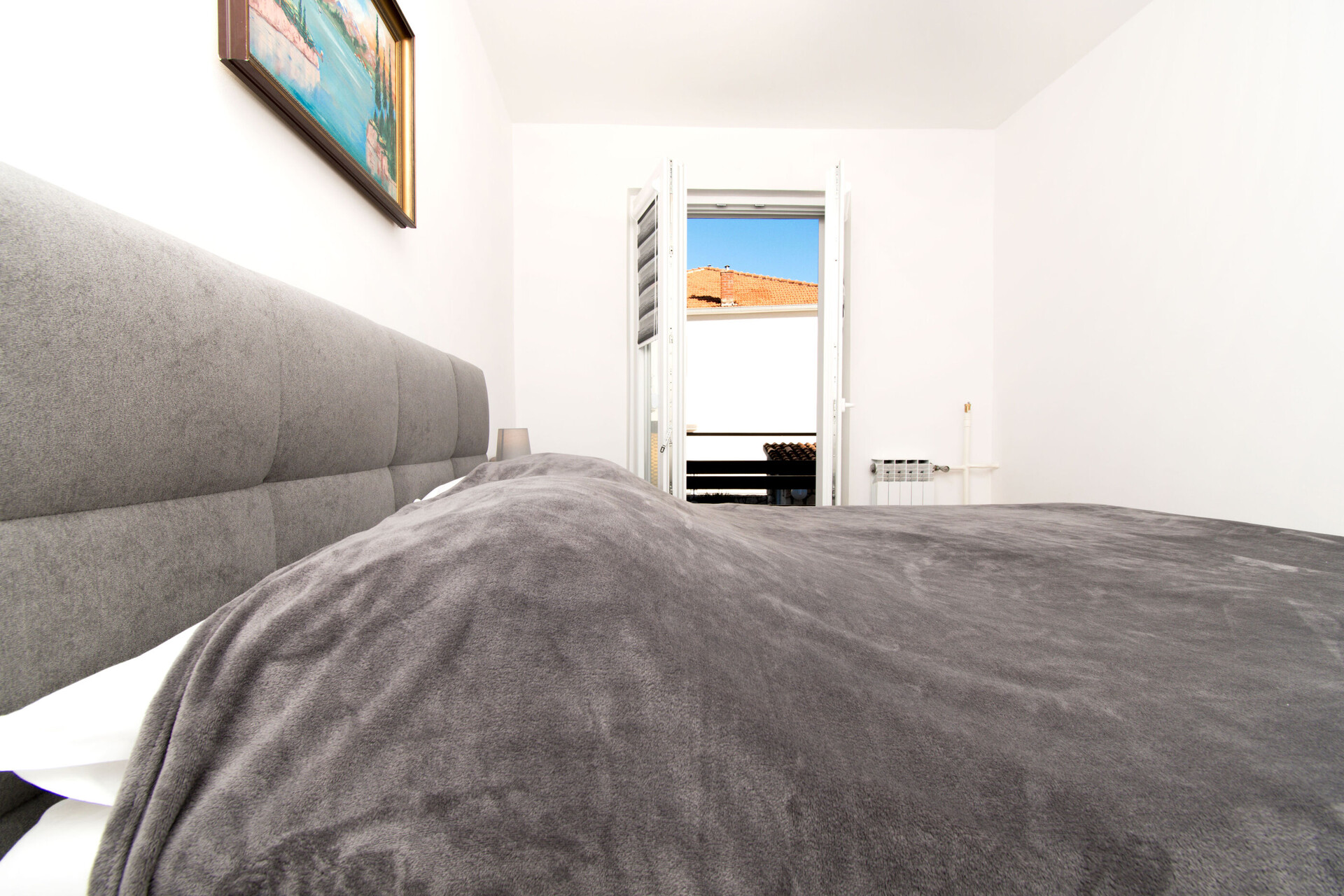 • Kreveti: bračni krevet. Posteljina je na raspolaganju. Iz sobe se izlazi na balkon.