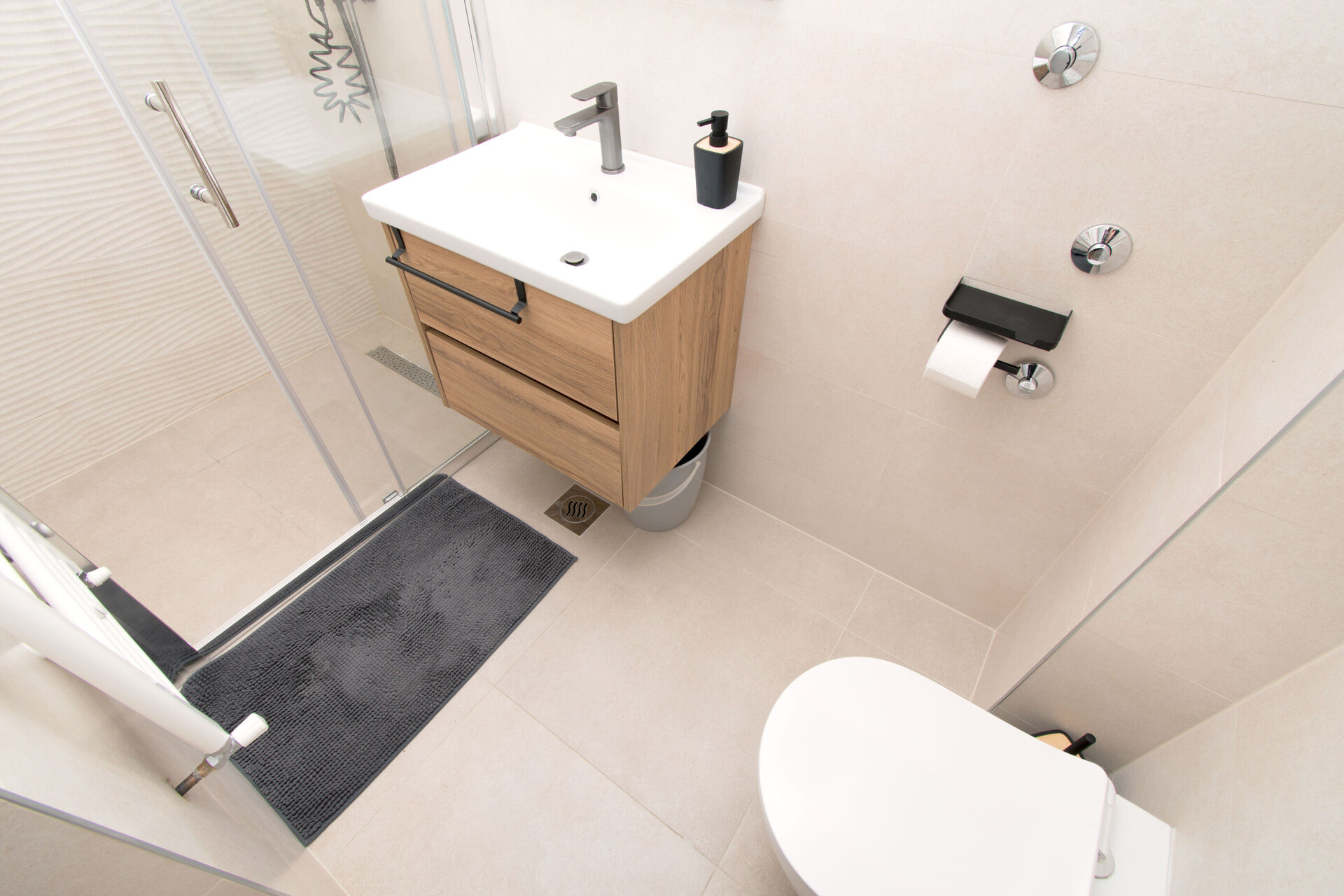 • tuš, tuš kabina, ručnici.