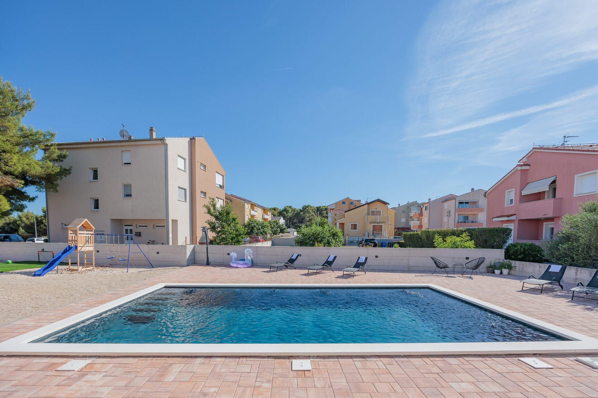 ingyen wifi, kilátás a kertre, A belső tér területe 78 m2, Hálószoba: 2, Fürdőszoba: 2, Balkon: 1, légkondi benne van az árban, TV, műholdas antenna.