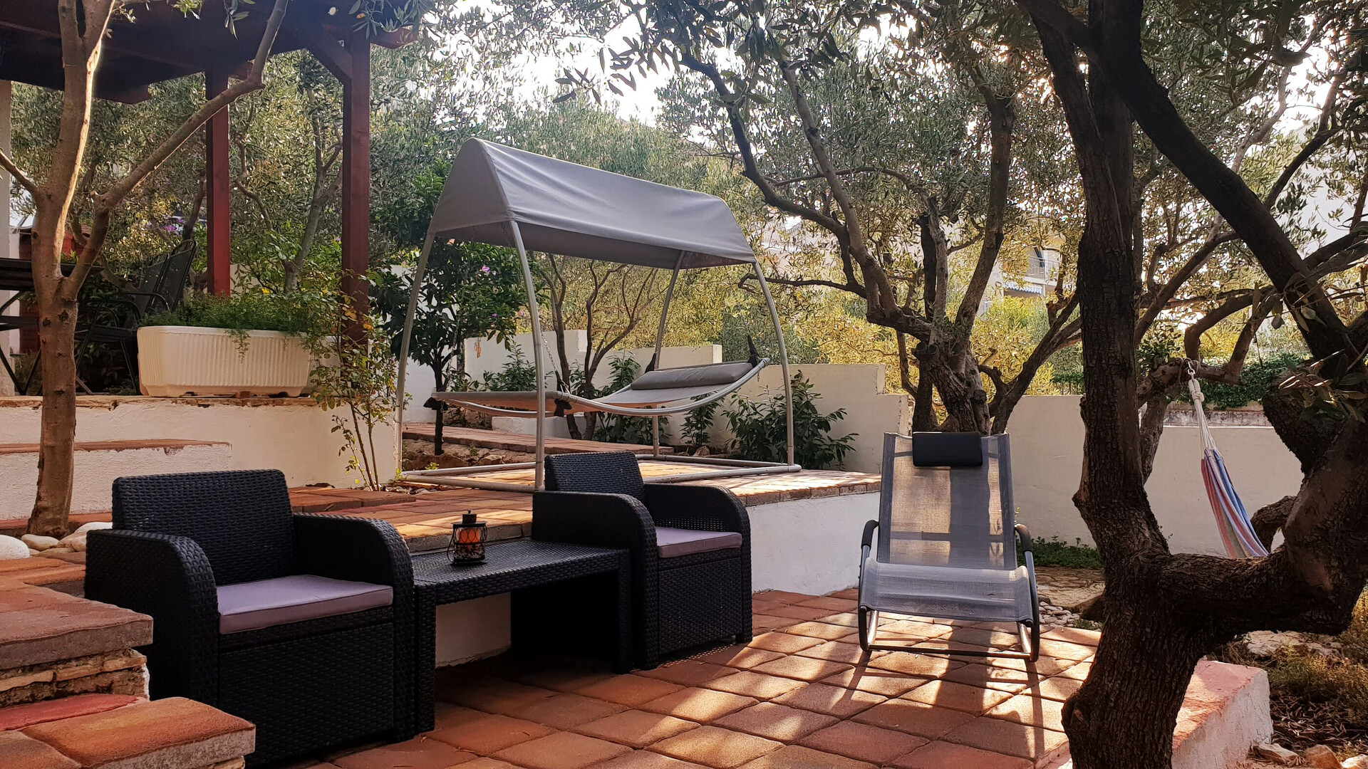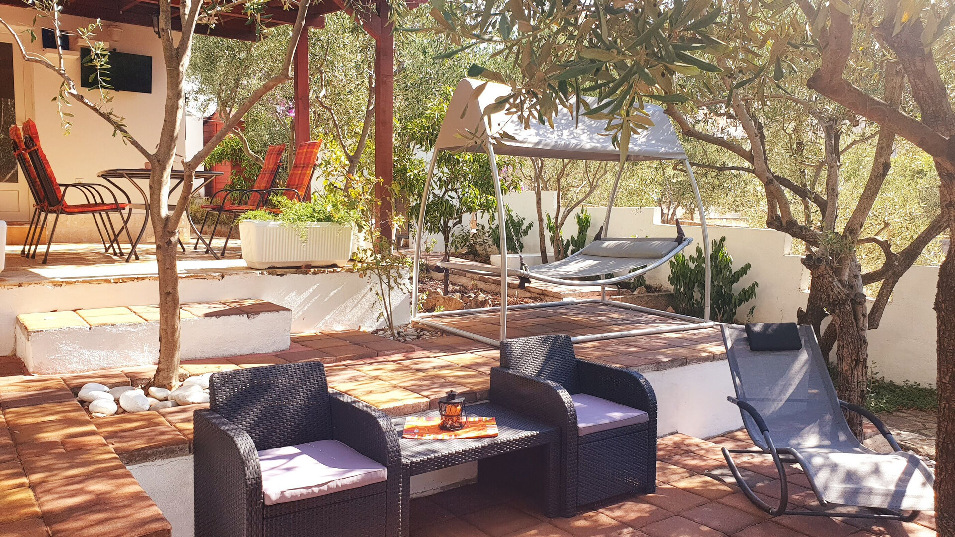 ingyen wifi, kilátás a kertre, A belső tér területe 36 m2, Hálószoba: 1, Fürdőszoba: 1, Balkon: 1, légkondi benne van az árban, TV, műholdas antenna.